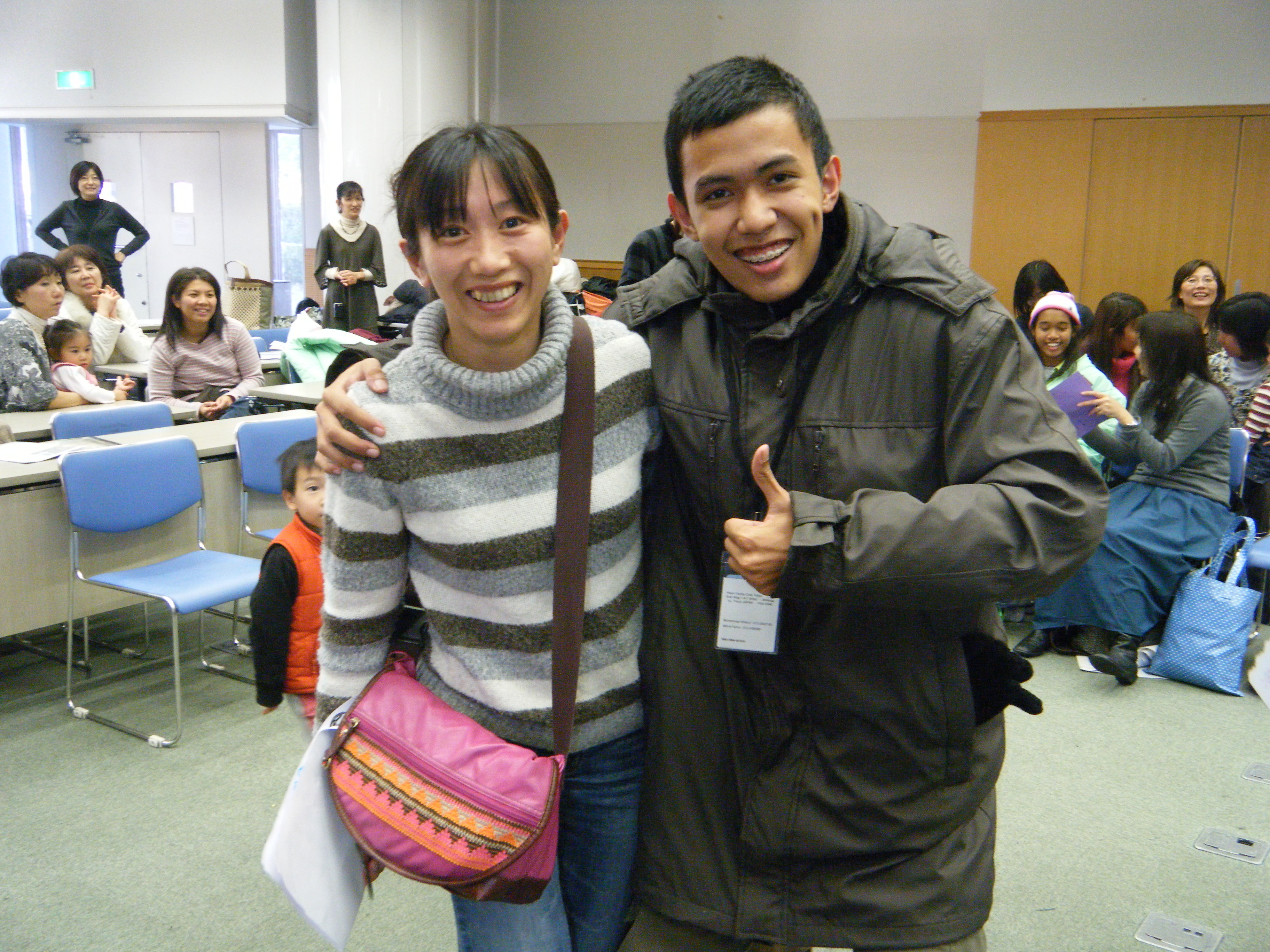 最終日は朝から秋葉原に行き、午後神田のホテルにホームステイをした40組近いゲスト&ホスト家族が集まり、感想などをシェア。みんないい顔していたよタピ、シャメルがNo1かな(笑)。シャメル&進藤家の番になって、私が先に言おうとしたら、「お母さん」と言って、自分が先に言いたい!とシャメルがマイクを持ち、みんなの前で大きな声でげんたの学校に行った事、友達のけいこちゃんの家で日本のピザを食べたこと、おにぎりをみんなで作ってサッカーをしたこと、おはぎを作ったこと、神社に行ったこと、パーティーをしたことを日本語で話したんだ。バグース!その日本語にびっくり!!言いたいという気持ちあふれるそのうれしそうな感じにみんながぐっと引き寄せられていたよ。その後私が「ソランソラン(初)シャメル バハサ(語) ジャポン、スリキ(少)。」その後にシャメルから聞いたマレーシアの心のようなことば「スリキスリキ(少)ラマラマー(長) ジャリ(成) ブキ(山)」と言ったんだ。そのことばの途中からマレーシアの子供たちも一緒に大合唱!感動するよね!!「シャメル サンガサンガバグース!」と言いながらハグをした。大人数だったし、それでシェアは十分。