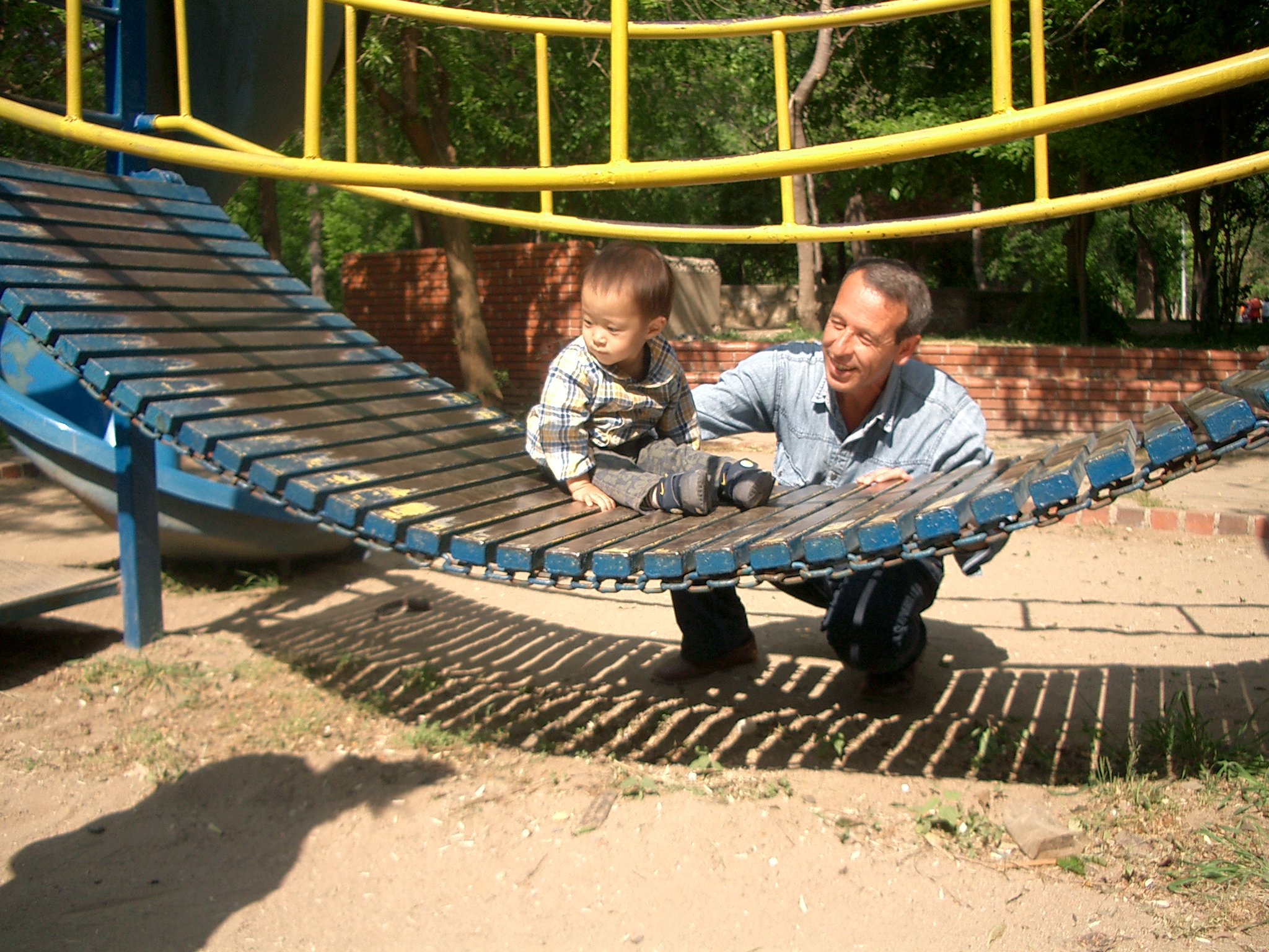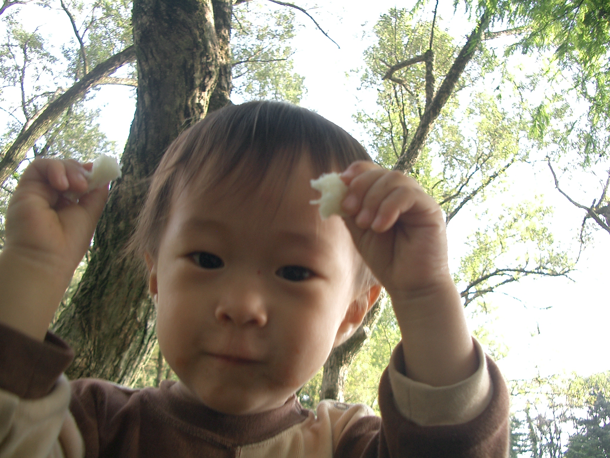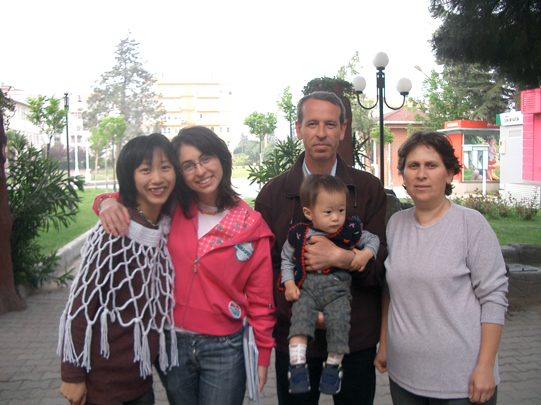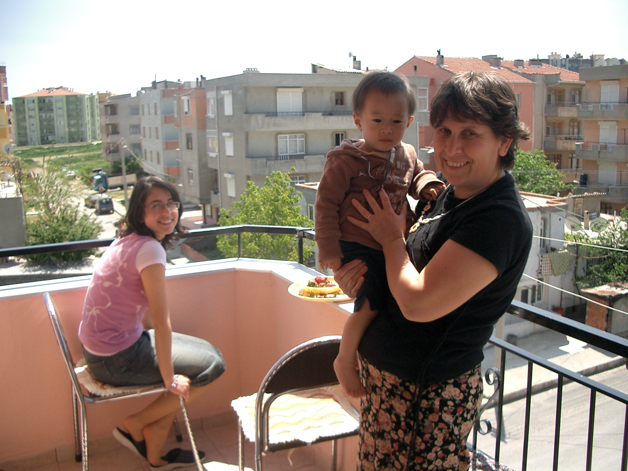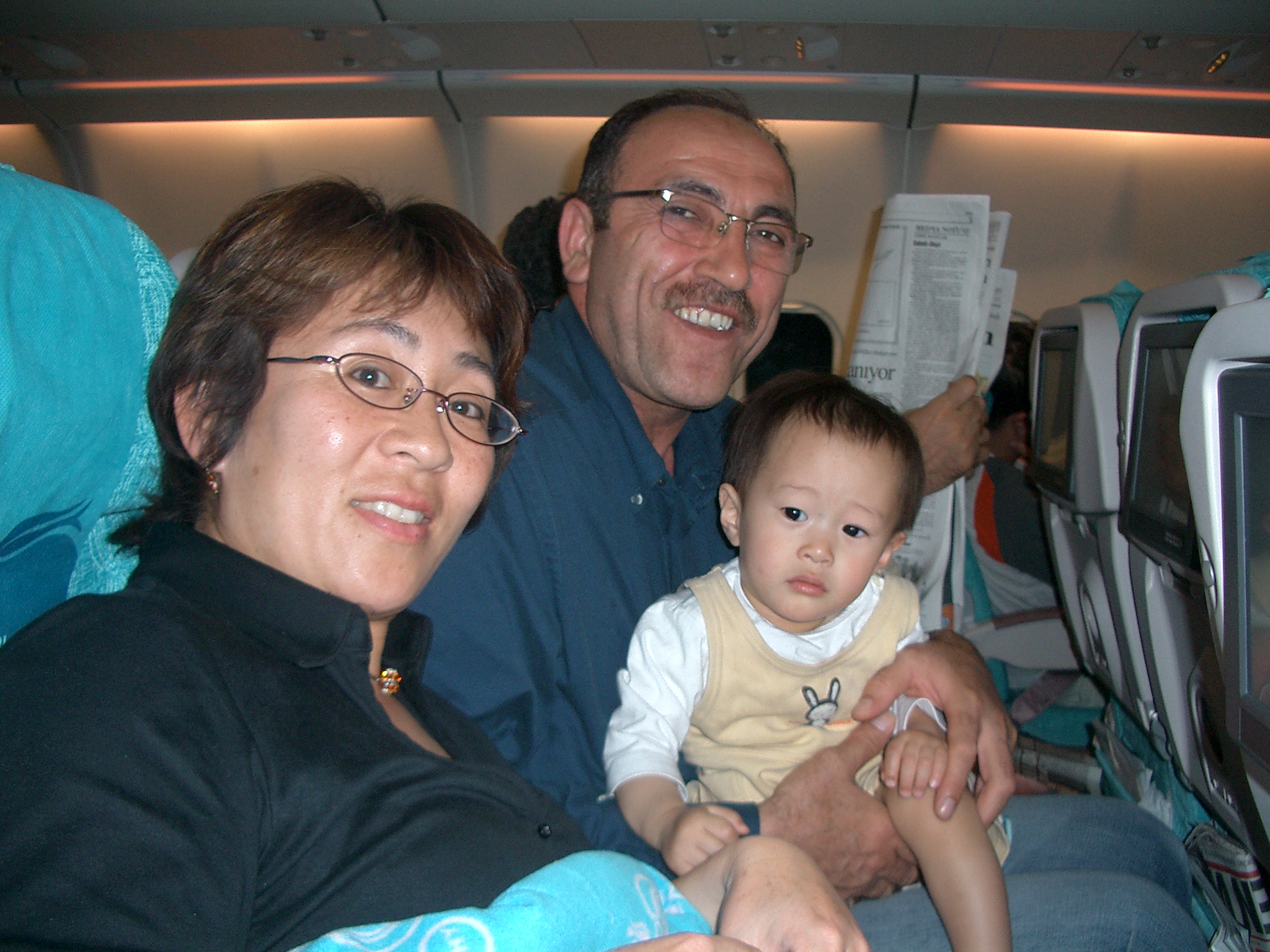 飛行機ではいい具合にカンタが寝てくれ、いい調子。トルコの人は赤ちゃん好きと聞いていた。本当にそうだった。赤ちゃんを見るとシェカール(砂糖)、タットルー(甘い)、ギュゼール(美味しい)と言ってかわいがるくらい。北京での乗り換えの時にも、トルコのご夫婦が一緒に行ったメンバーのウッチの娘、あけたん(1才3ヶ月)をみて、たまらないという感じで話しかけていた。「どこから来たの?」と聞かれて、ウッチは「ジャポン、あっ、ジャポンヤ」と答えていた。その様子を見ながら、日本って「ジャポンヤ」っていうんだと知る。トルコ航空の中でとなりに座っていたおじさんも、寛太を抱っこしてくれた。デジカメで一緒に写真を撮って、その映像を見ていたら、おじさんは手を出して「バキン!」と言った。その音知ってる。それはCDの電話のシーンでお母さんが「どれどれ見せてごらん」の所だ。デジカメを見せてって言っているんだと分かった。場と共にただの音だったものに意味がついた。移動中からとっても楽しい感じ。「ハディ、ギディヨルス」(じゃあ行こう!)だとか、「ヒッピミス メキチン ギディヨルス」(みんな集まったから行こう!)だの、歌っていた音(ことば)や遊んでいた音(ことば)がみんなに向かって軽やかに口から出てきた。