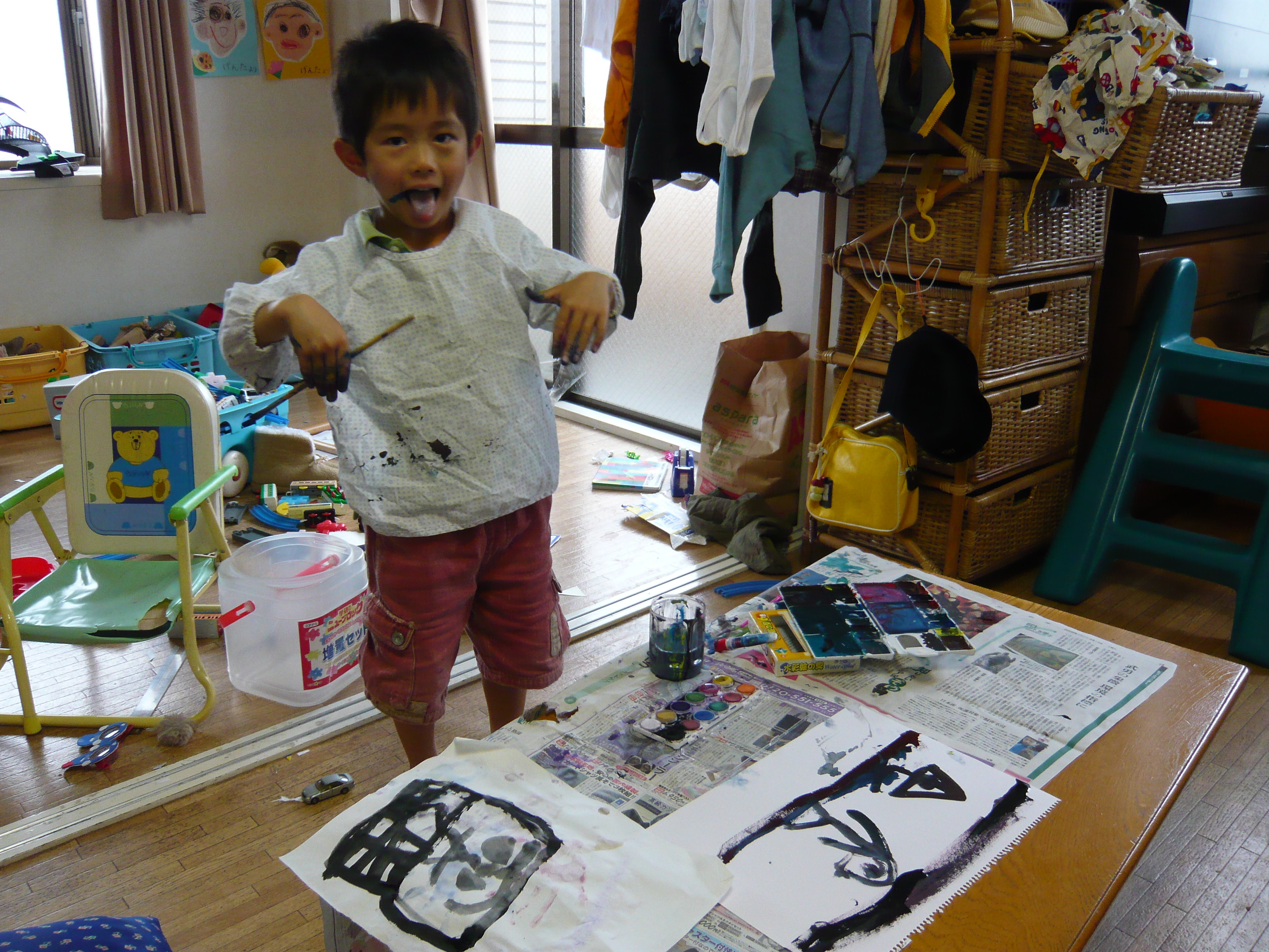 寛太は色が言いたいんだよね。だから当てずっぽうでも言ってみて正解を引き出しているような感じが面白い。まずは言う!大波から丸出し。そうやって、あっという間にちゃんと言えるようになっちゃうんだろうな〜。