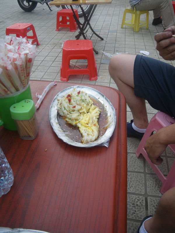 へんな名前だが、形が腸ににているためそういう名前になっている。米粉でできていてうまい。値段はたしか2元ぐらいだったと・・・。