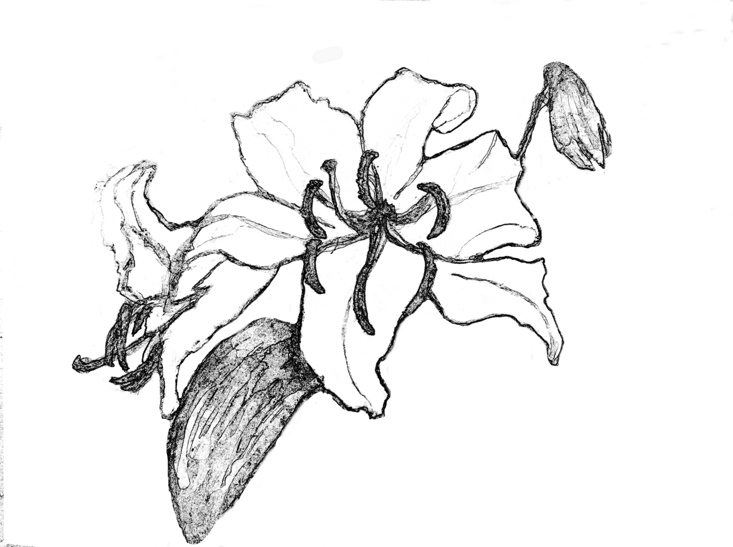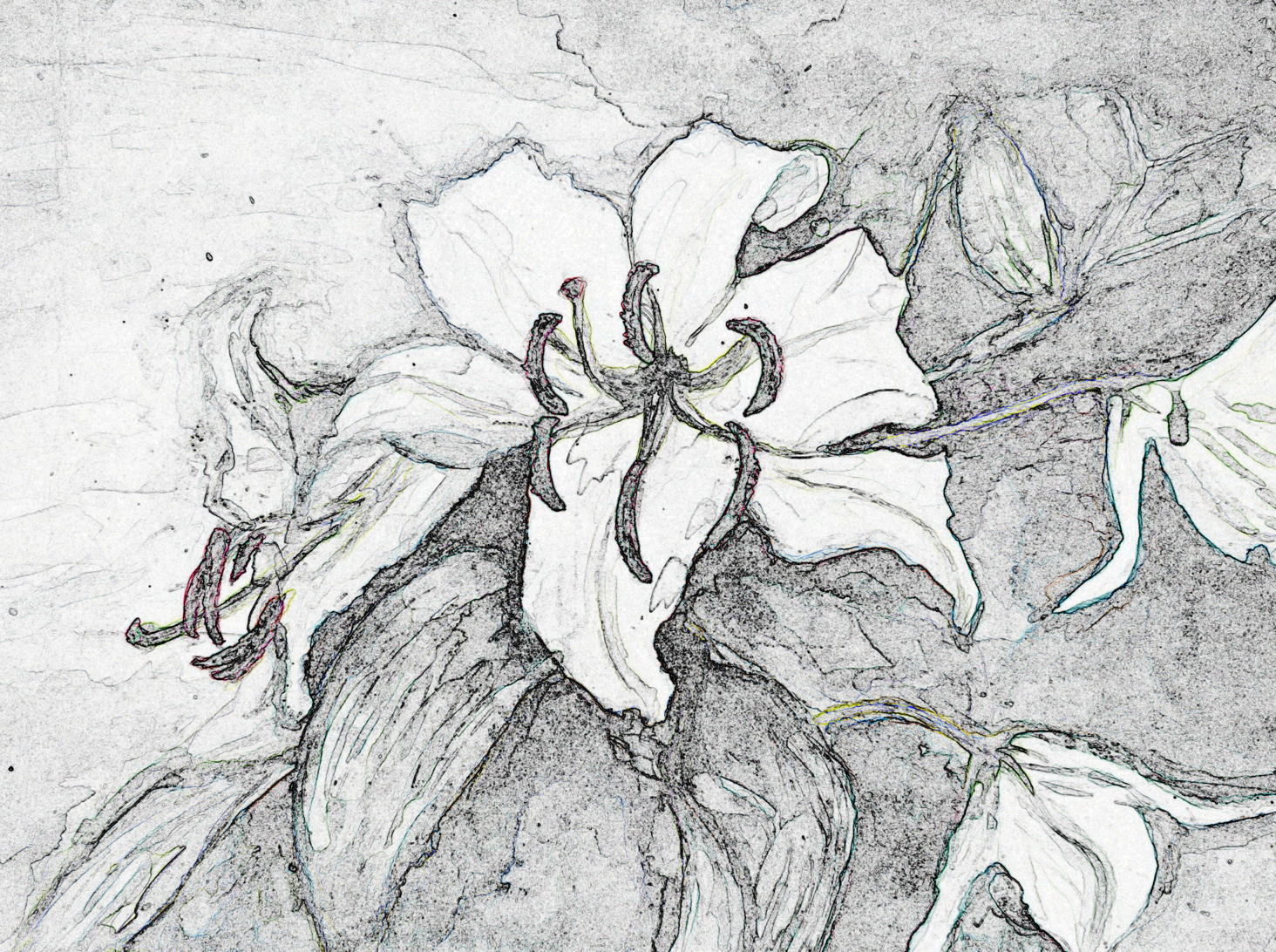 右側がごちゃついているので、右上のつぼみだけをのこして削除。葉っぱや左の横を向いている花も削除したかったのだが、無いとちょっと寂しいので残すことにした。あとはひたすら輪郭をトレースし手で整える。もちろんペンタブなんか持っていないからマウスである。途中で施主代行に見せた。