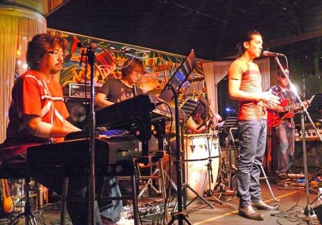 ASΦKOは、Percussionのオバヲさん、Keyboardの柿崎さん、Guitarの河越さん、そしてVocalの歩くんの4名のバンドでベースがいないのですが、ライヴをやる時はいつも呼んでいただいております。