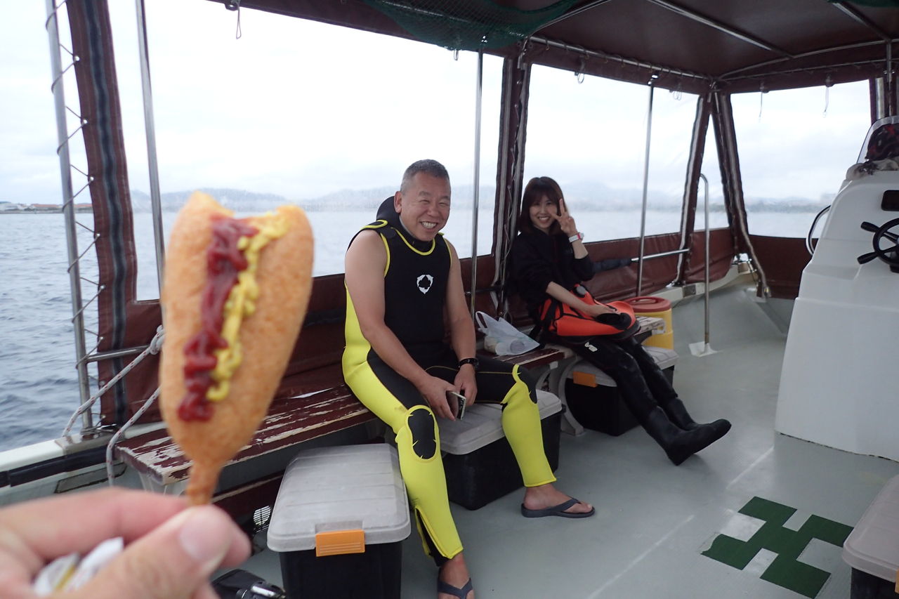 ナイトダイビング前に軽食。この後アンパンも頂きました。笑