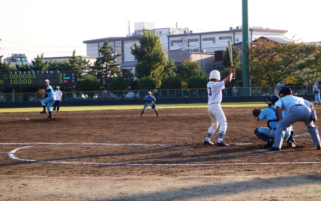 栄のエース君はあまり出来がいいとは思えないが四球になっても高めにボールがいかない事と、得意の落差のあるカーブがやはり打たれない原因だろう。問題は守備。特に外野の乱れがそのまま失点につながっている。1年生が主体の外野なので今後上手くなる要素はあるとはいえ、今大会の不安要素の1番だろう。