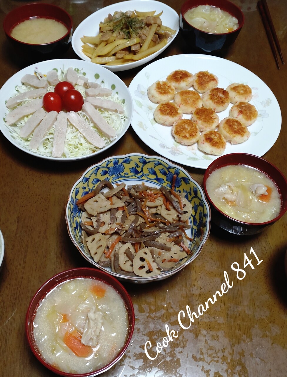 蓮根と蒟蒻のきんぴらの残りも出しました。