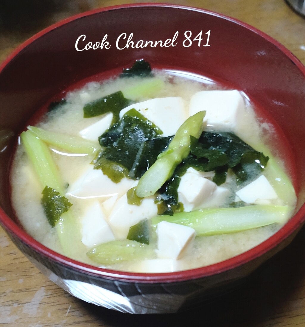 豆腐とワカメとアスパラのお味噌汁