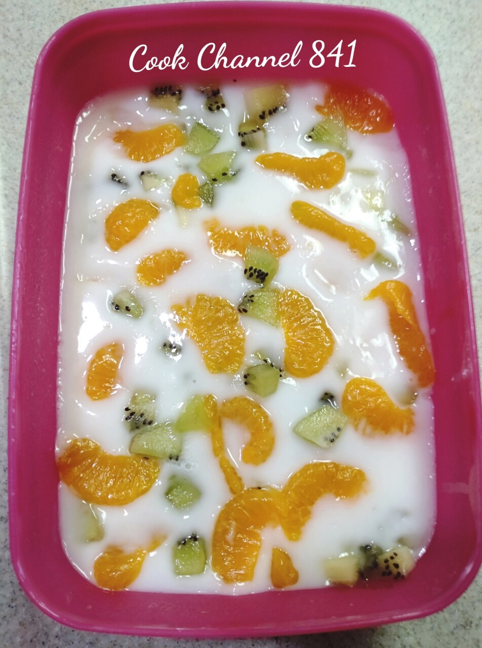 仕事から帰ってから時間があったので、キウイとみかん缶の牛乳寒天を作りました。