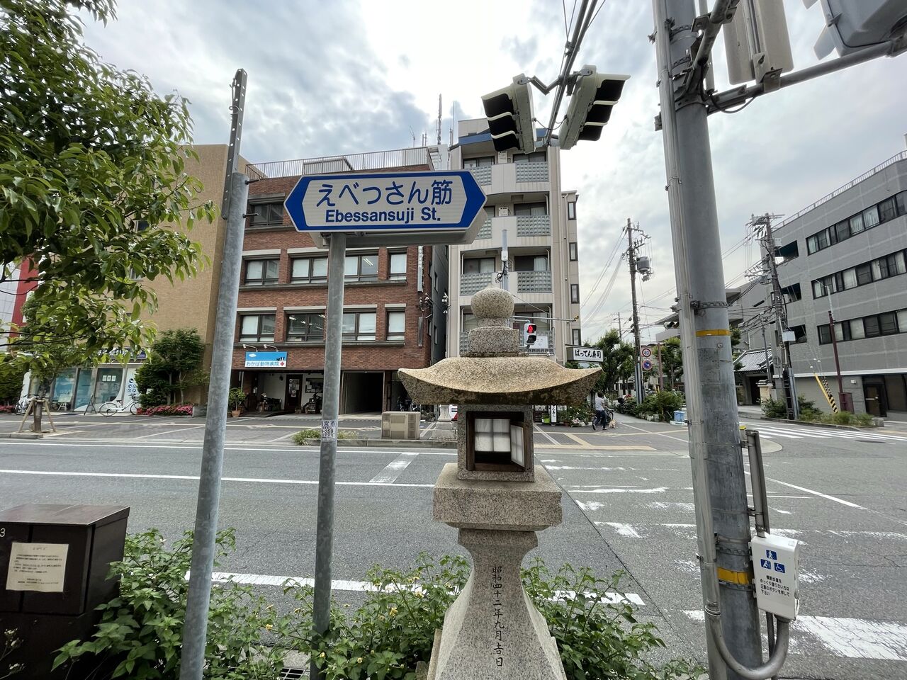 神社の東側も「えべっさん筋」でした。南北に走る道路を「~筋」というような気がしますが、「~筋」の文化はどのあたりまで拡がっているのか興味深いところです。