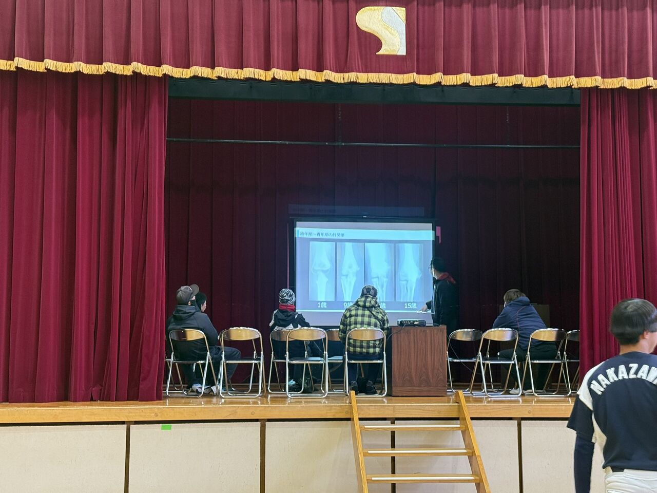 身体所見の確認と医師によるエコー検査と並行して、NPO法人野球医療サポート栃木理事長の自治医大中島先生による保護者・指導者向けの講演も行われました。