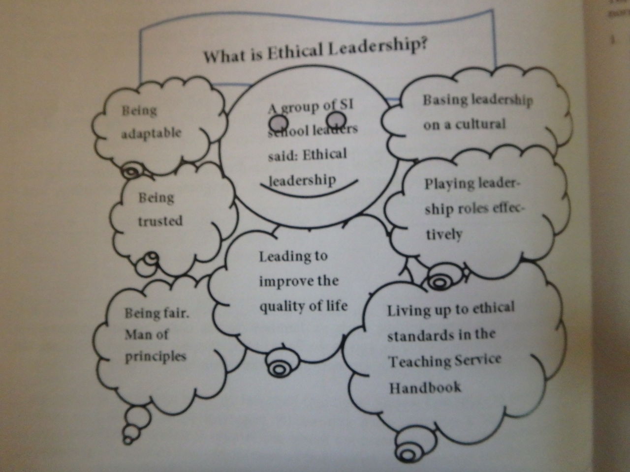 ①ソロモンの多様な民族が一緒に暮らす環境の中では生徒にも教員にも一人一人の「アイデンティティー」(個性)を尊重することが最も大切なリーダーの素質。その個性を“生かす”とか“引き出す”というよりは“受け入れる”“大切にする”という姿勢が必要である。