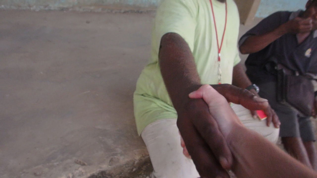ところで、隣町(コロフェ)にハワイからの薬草などについて調査に来ている若者を発見!久々の西洋人に会話が弾みます!