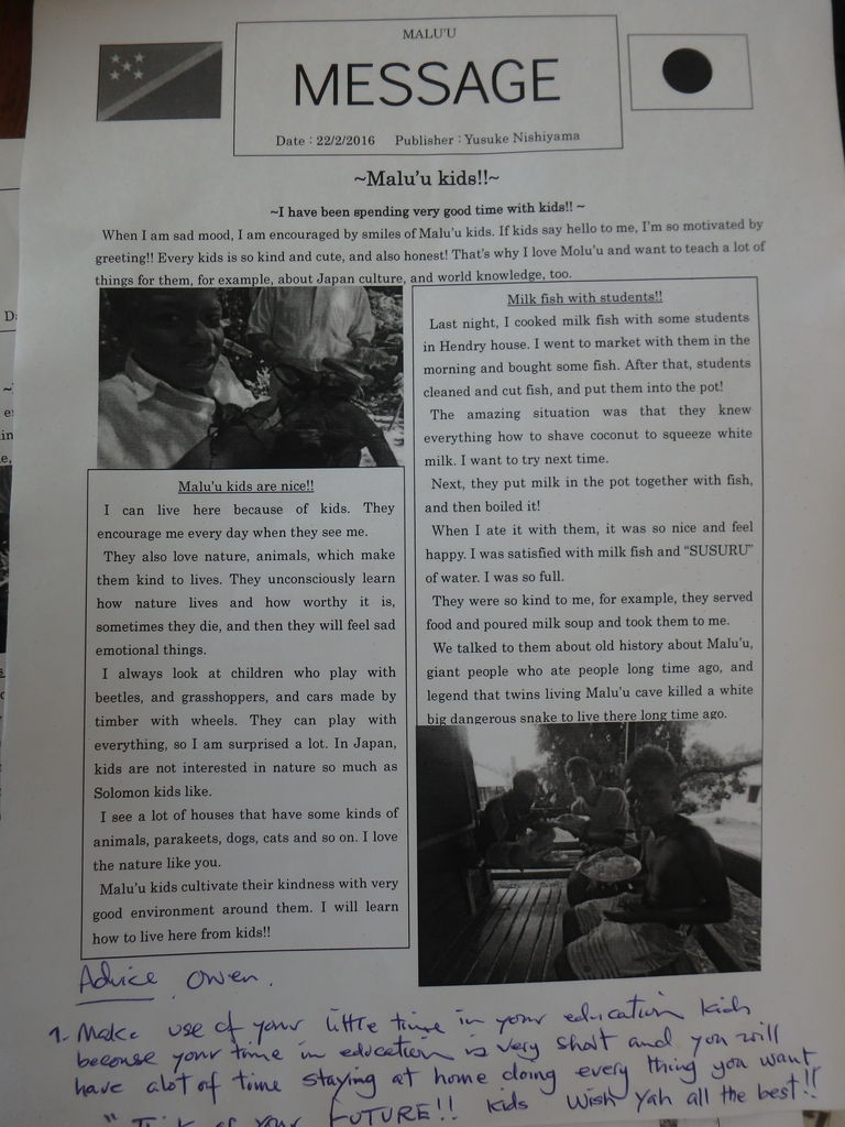 「マルーの学校でマルーの先生たちと一緒に授業について考えたいのです!」