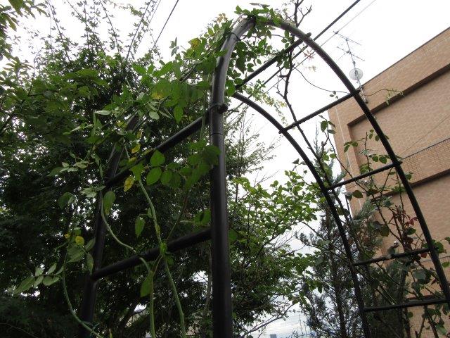 ついでに反対側の鉢育ち “フランソワ・ジュランビル” も誘引