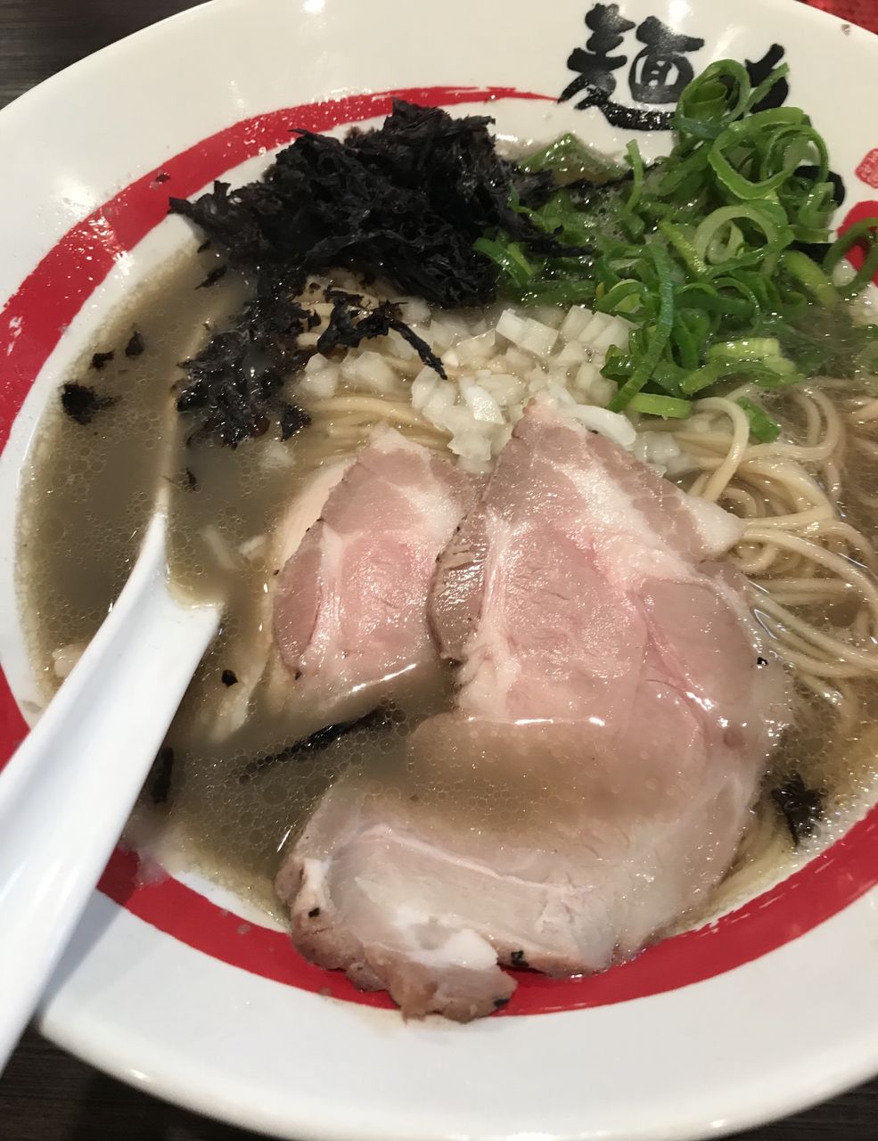 「味噌ラーメン」(1,000円)+「ライス(中)」(無料)を頂きました。お好みは「柔らかめ」でお願いしました。最初の1、2口は、味噌だけが主張して、出汁をとってない味噌汁を飲んでいる感覚なのですが、その後は、ベースのスープの旨味が前面に広がり、味噌の旨味が後味に回りまして、親和性が増して美味しいです。ここから、スープを完食するまでは、まったりとした家系味噌で中毒性あります。そして、時々拾う「フライドオニオン」が良い感じです。この濃厚でまったりとしたスープとライスの相性は最高で、お替りしようかと迷った程でした。