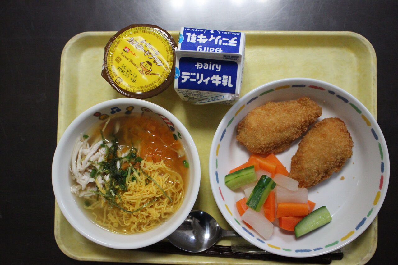 誕生会最後の給食は、「奄美鶏飯をメインに、ささ身チーズフライ・カリポリサラダ・牛乳・プリン」でした。みんなおいしくいただいていました。来年も多くのお父様が来園されることを期待しています。おいしい給食を食べに来てください。