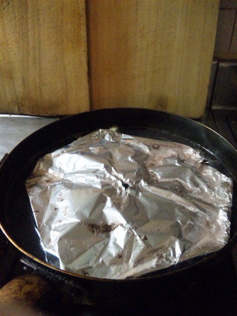 結局、しょうがないので晩酌の赤ワインを注いで炊いてるよ。奇跡的に生姜はあったけど。