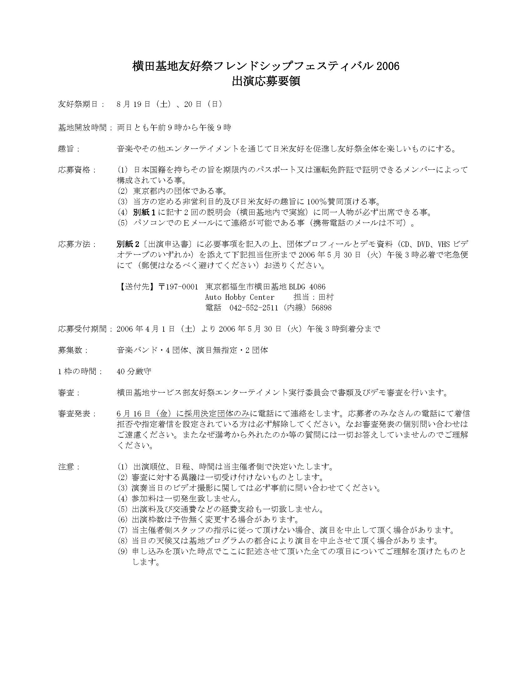 横田基地友好祭2006(Friendship Festival 2006)の開催日が決定しました。