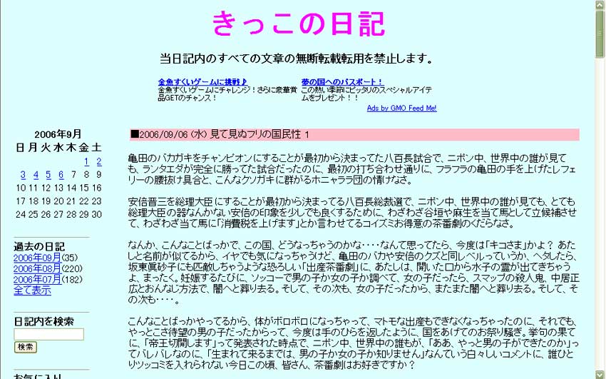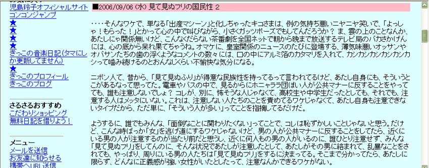 [[http://blogs.yahoo.co.jp/higasitoyokazu/19512922.html 【緊急】ポリスジャパンにきっこの日記の皇室誹謗を記事にした根無し草blogを紹介]]←記事はココをクリック