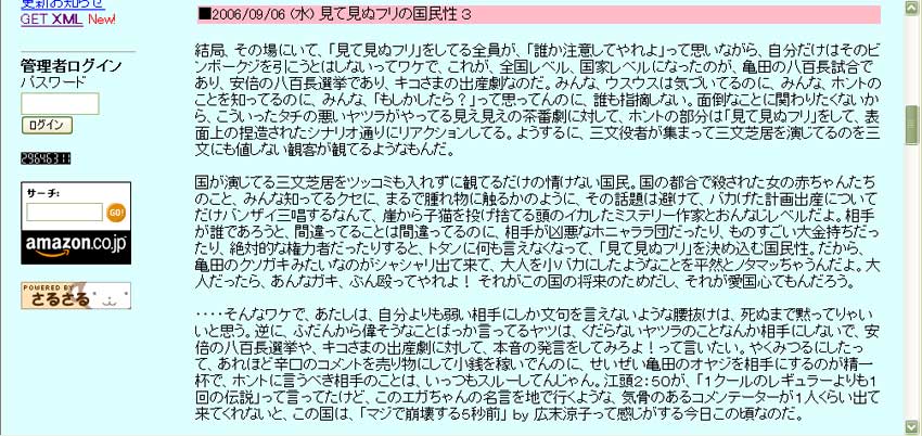 今回、『きっこの日記』「見て見ぬフリの国民性」が、削除されて話題となっているが、