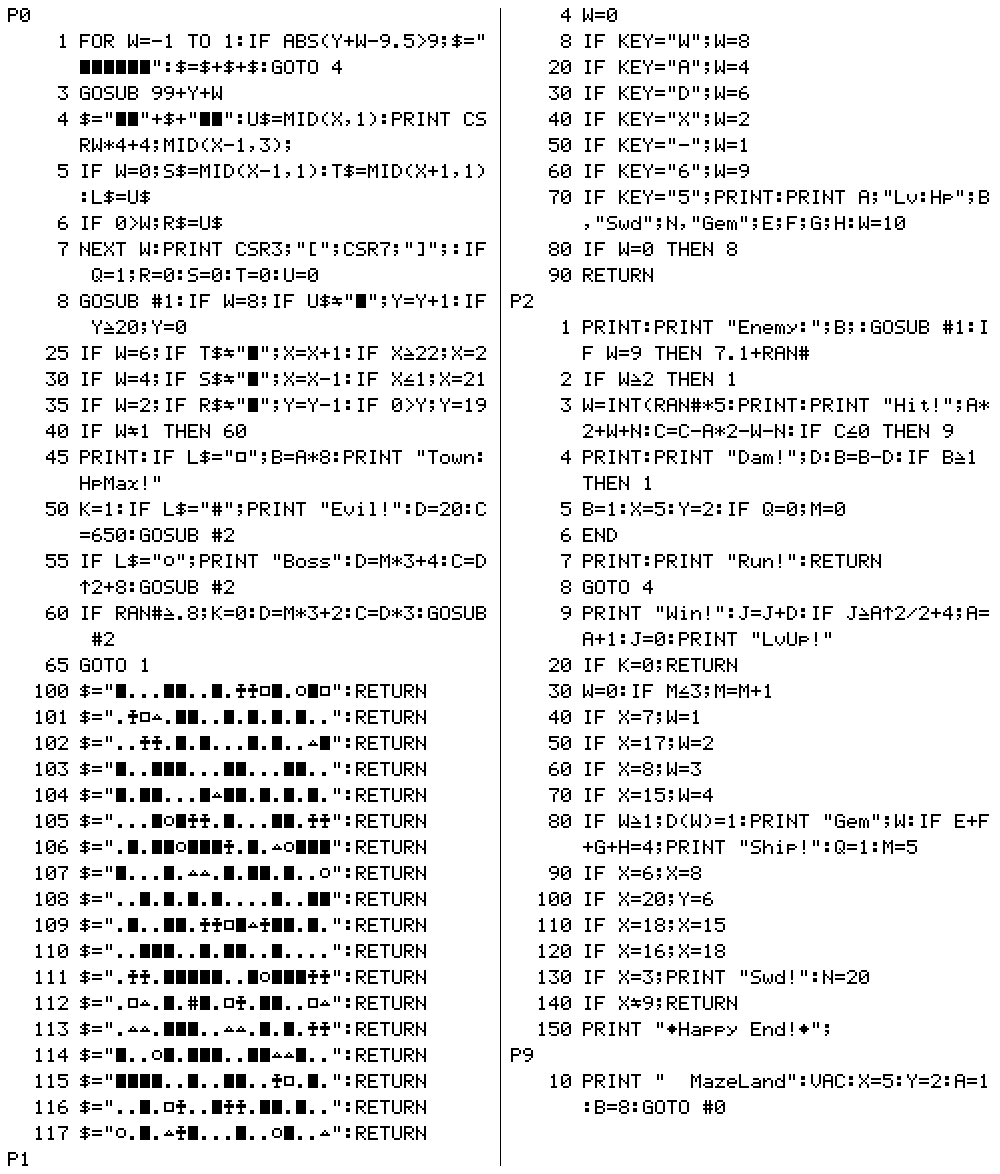 対応機種…………PB-100/110/120用ゲームプログラム