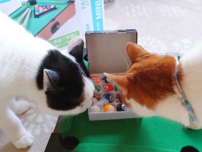 ミニビリヤードに興味を示した、ハル 匂いチェックが止まりませ