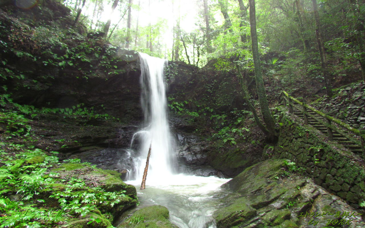 さて、今日の壁紙は、息子と行った奈義町にある屋敷の滝。