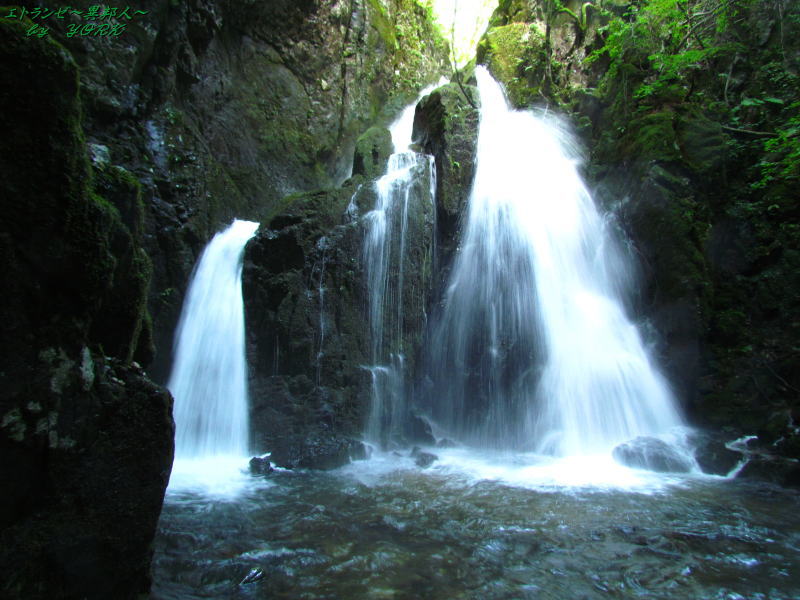 『真庭市(旧勝山町)山久世、二ノ氏の至孝川に懸かる滝。国道313号線から至孝滝橋を渡り約200mで左折し、約1km進むと滝の入口があり、そこから約700m沢伝いに上ると、この滝を見ることが出来る。』