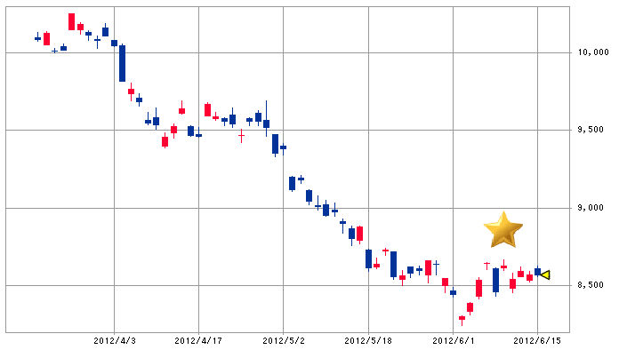 現時点のトレンド転換基準株価:8665円(2012年6月11日高値)