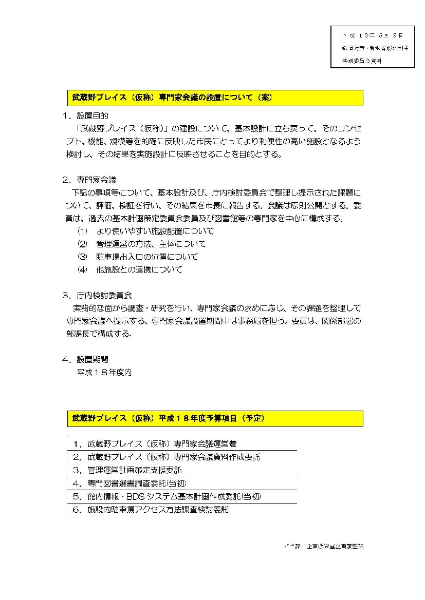 ¡¡¡¡ÖÉð¢Ìî¥×¥ì¥¤¥¹¡Ê²¾¾Î¡Ë¡×¤Î·úÀߤˤĤ¤¤Æ¡¢´ðËÜÀ߷פËΩ¤ÁÌá¤Ã¤Æ¡¢¤½¤Î¥³¥ó¥»¥×¥È¡¢µ¡Ç½¡¢µ¬ÌÏÅù¤òŪ³Î¤ËÈ¿±Ç¤·¤¿»Ô̱¤Ë¤È¤Ã¤Æ¤è¤êÍøÊØÀ¤Î¹â¤¤»ÜÀߤȤʤë¤è¤¦¸¡Æ¤¤·¡¢¤½¤Î·ë²Ì¤ò¼Â»ÜÀ߷פËÈ¿±Ç¤µ¤»¤ë¤³¤È¤òÌÜŪ¤È¤¹¤ë¡ÖÉð¢Ìî¥×¥ì¥¤¥¹¡Ê²¾¾Î¡ËÀìÌç²È²ñµÄ¡×¤ÎÀßÃÖ¤òÄ󰯤·¤¿¤³¤ÈŽ¡