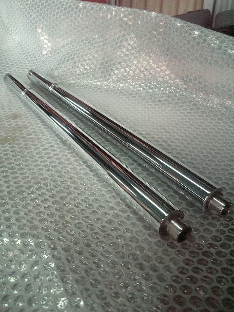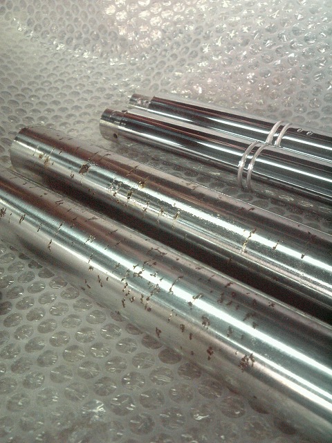 再メッキ前のインナーチューブに比べると光沢は見違える