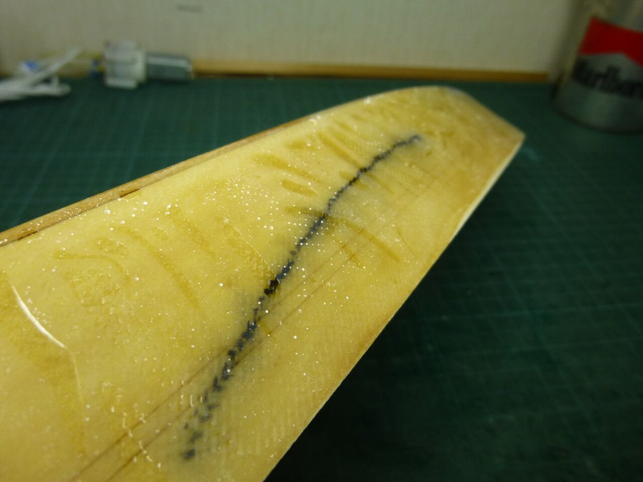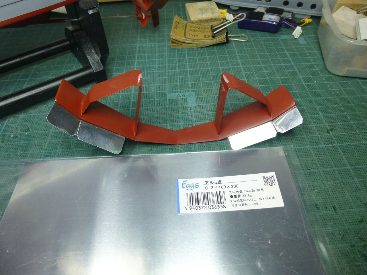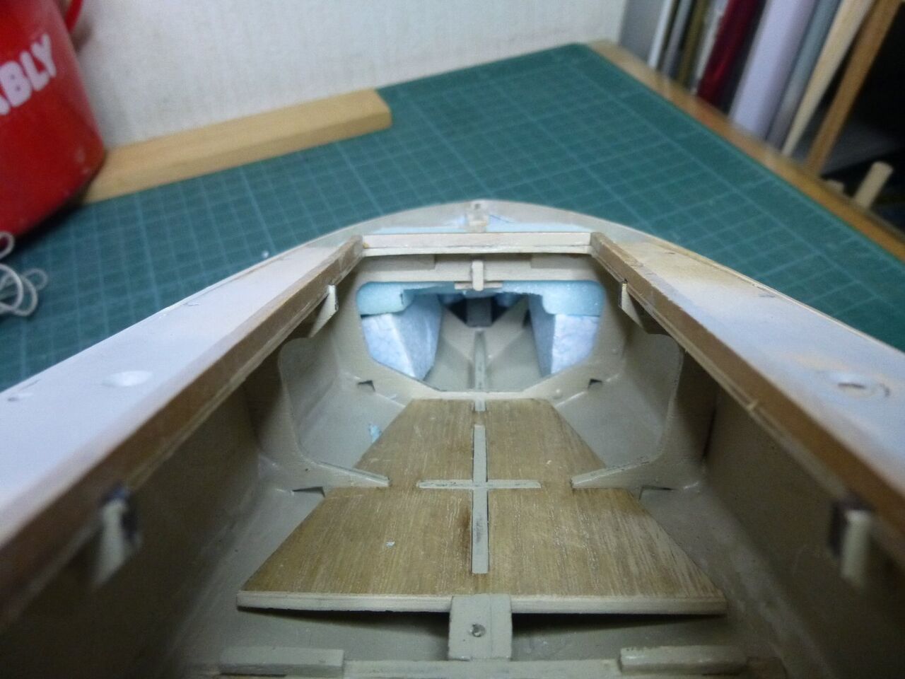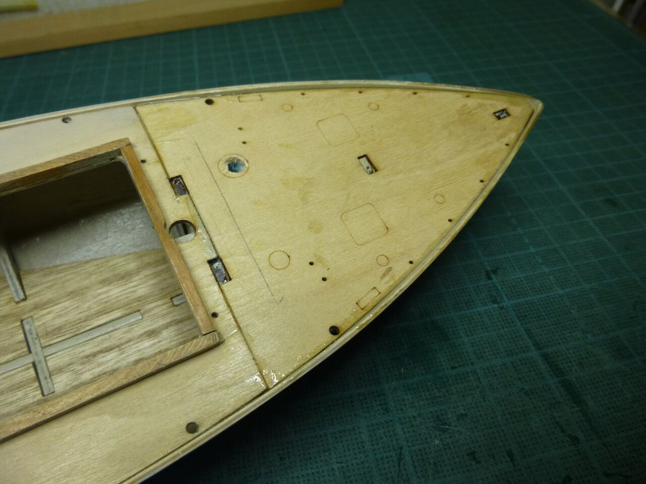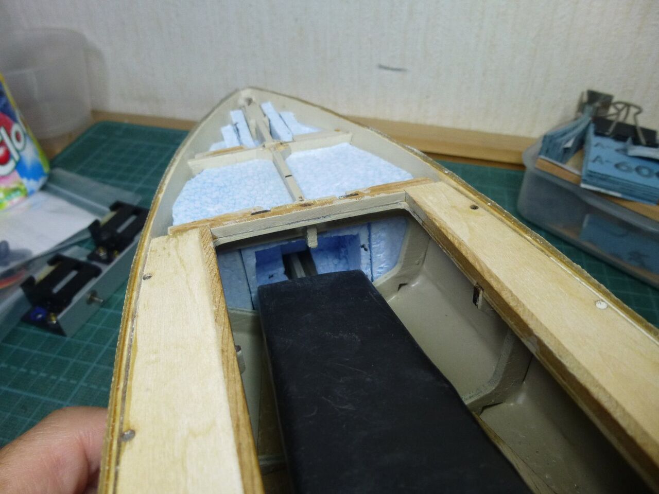 スタンチューブの位置が出たところでスケグをプラ板から切り出しました。キットではベニヤを使うように指示されてますが常に水中に触れる部位は極力防水性能を高めるために材料を置き換えます。