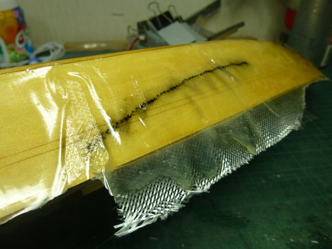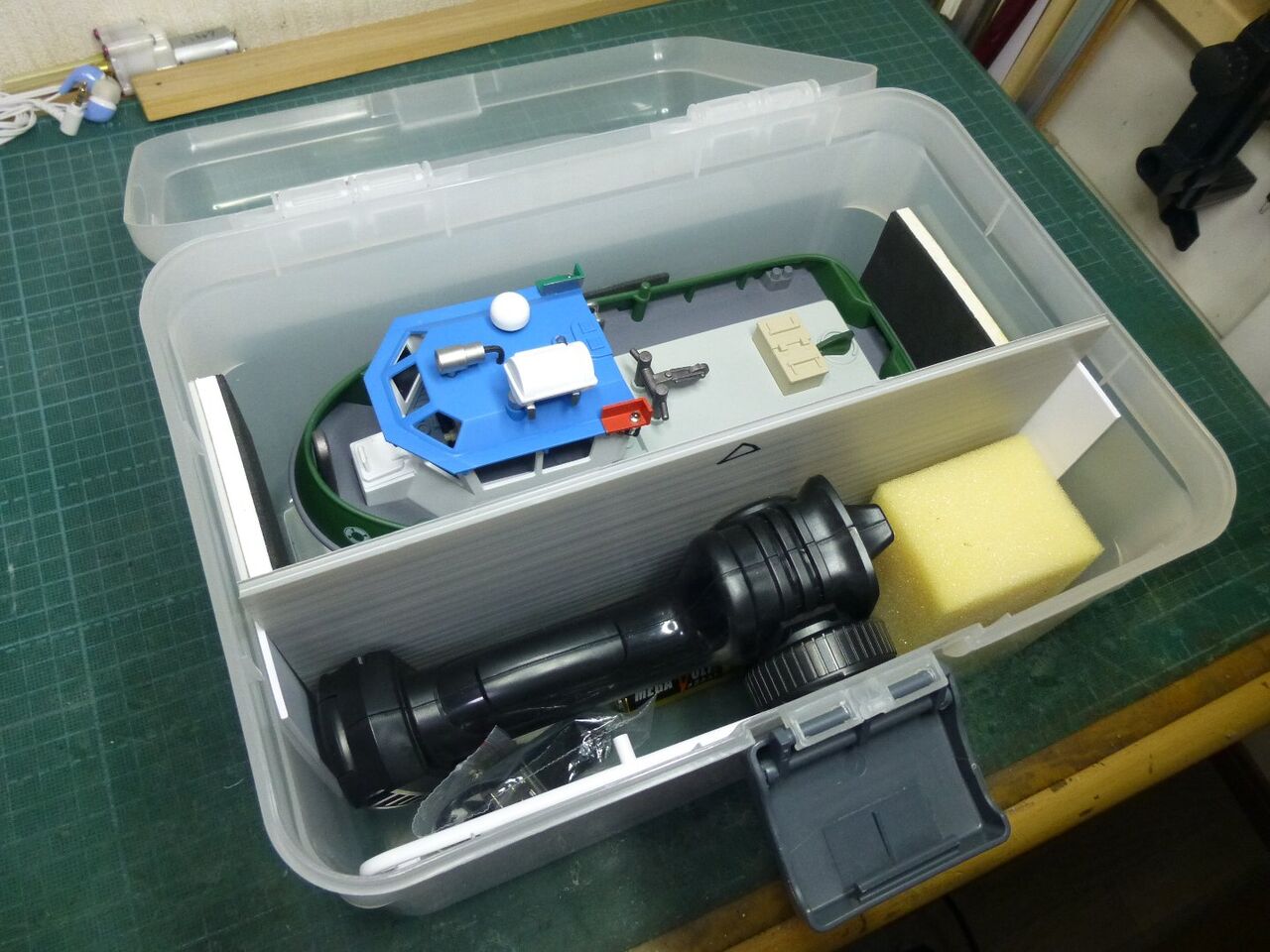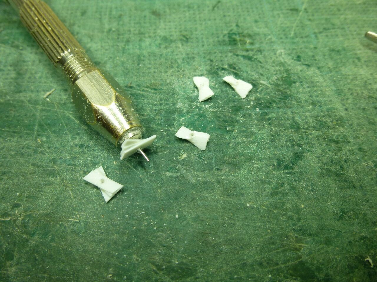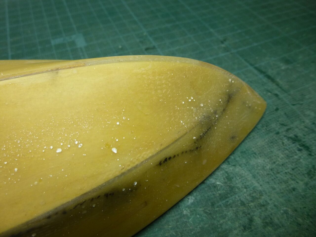 スタンチューブの位置が出たところでスケグをプラ板から切り出しました。キットではベニヤを使うように指示されてますが常に水中に触れる部位は極力防水性能を高めるために材料を置き換えます。
