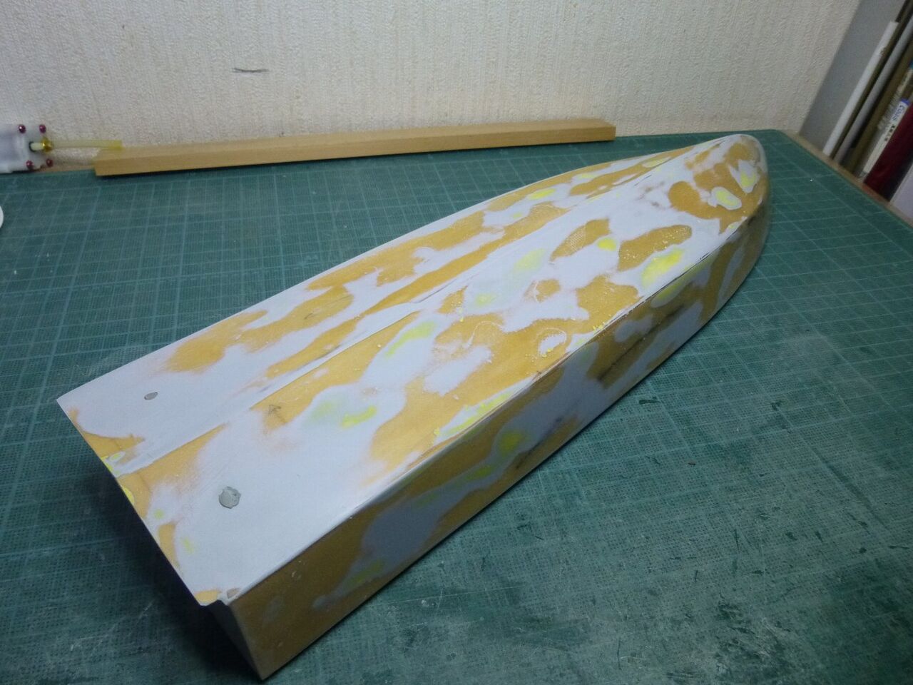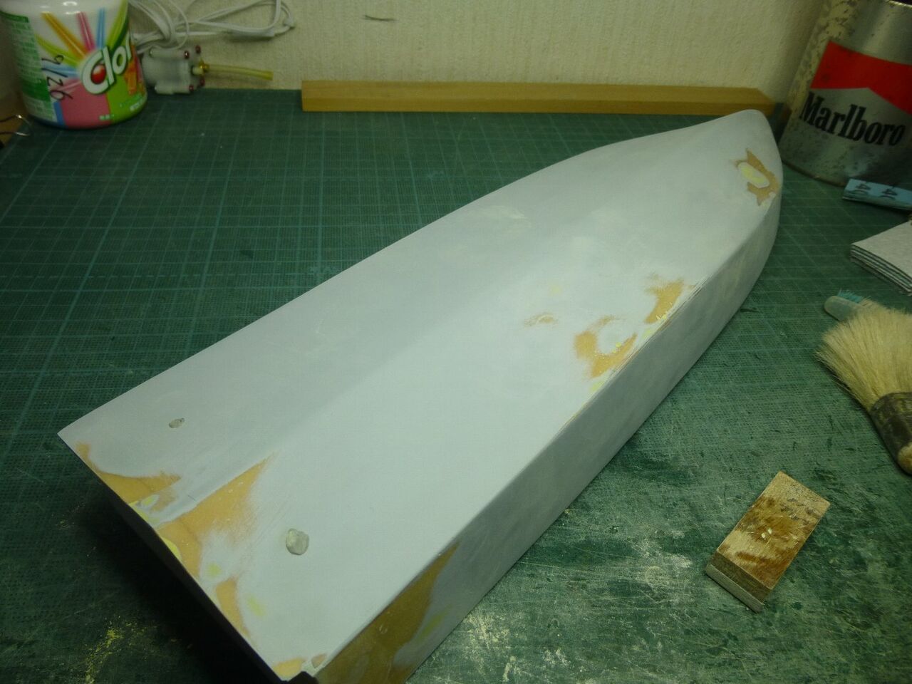 "\( ̄^ ̄)゛ハイ!! スッ飛んじゃってますがエポキシにタルクを混ぜたパテで隙間を埋めて削り出してサフ吹きました。 1回目のパテ埋めなんでまだまだ穴が残ってますね(つд⊂)ェ〜ン さらにパテ埋めしてキレイにならしています。