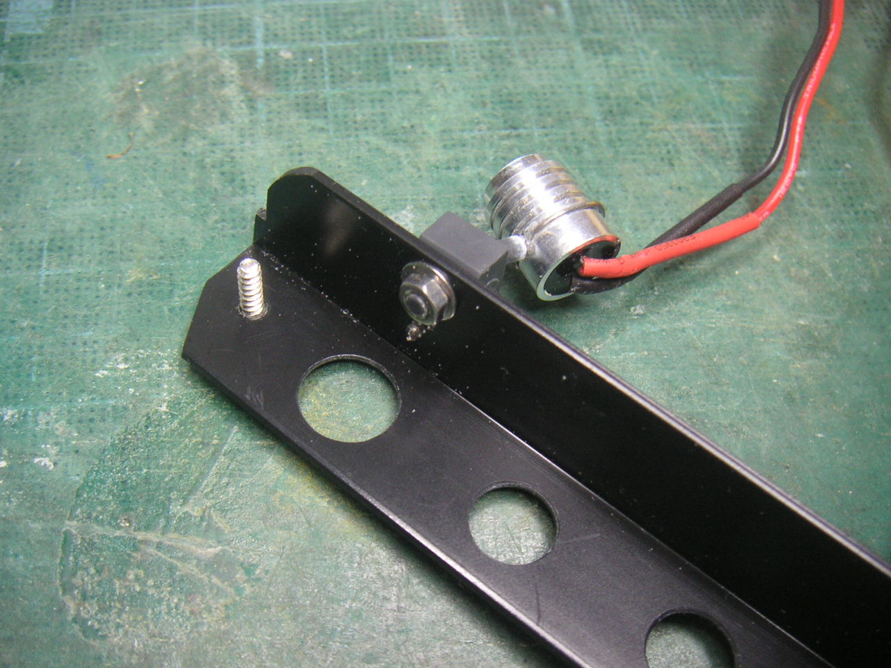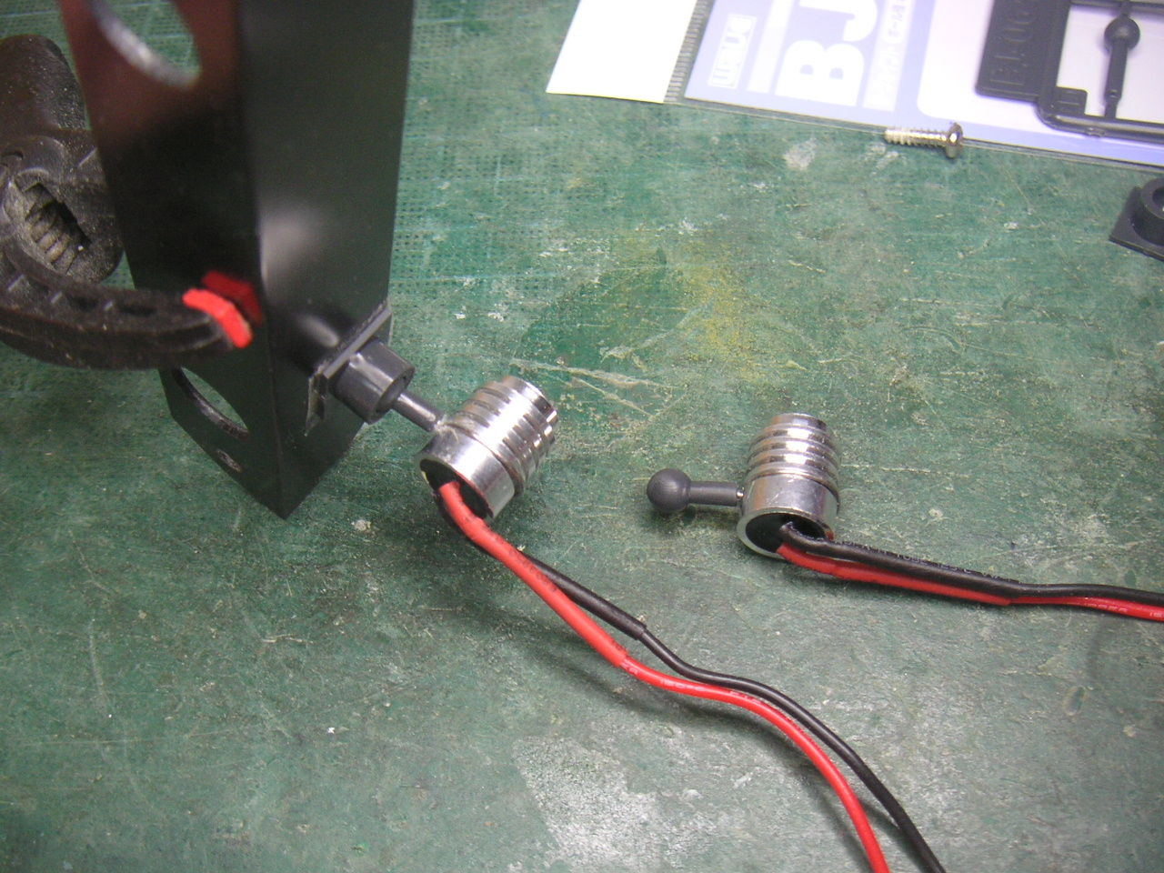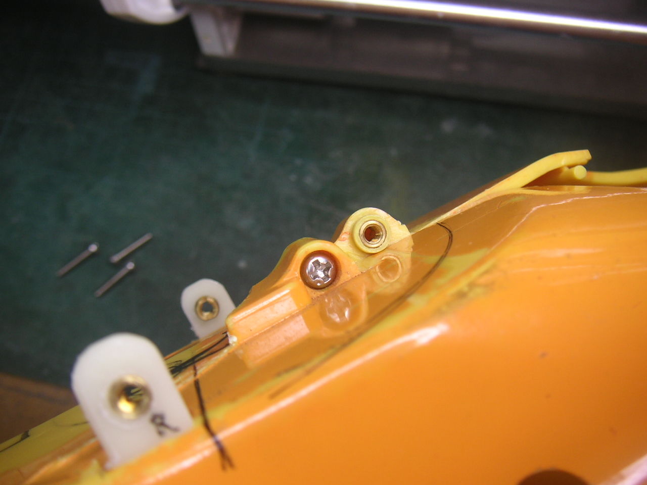 なので2機目は同じヘマはしないように脚を作り替えます。 2mmのステンレス棒が転がっていたのでチャッチャと曲げてカーボン脚の代わりにします。ステンレス棒だけでは保持出来ないので2mmABS板を差し込んで台座に保持させます。もちろんネジを入れてABS板の抜け止めとします。