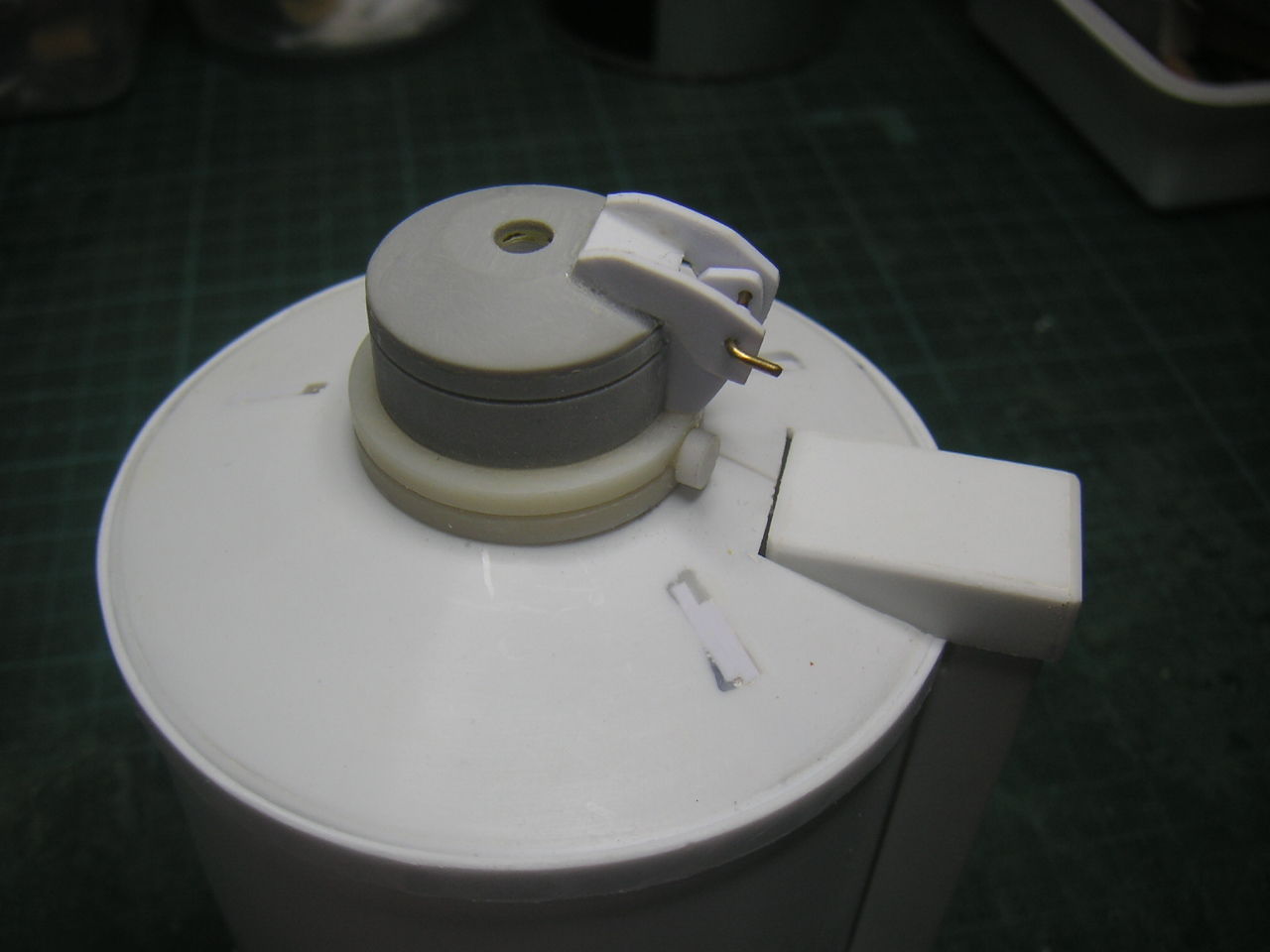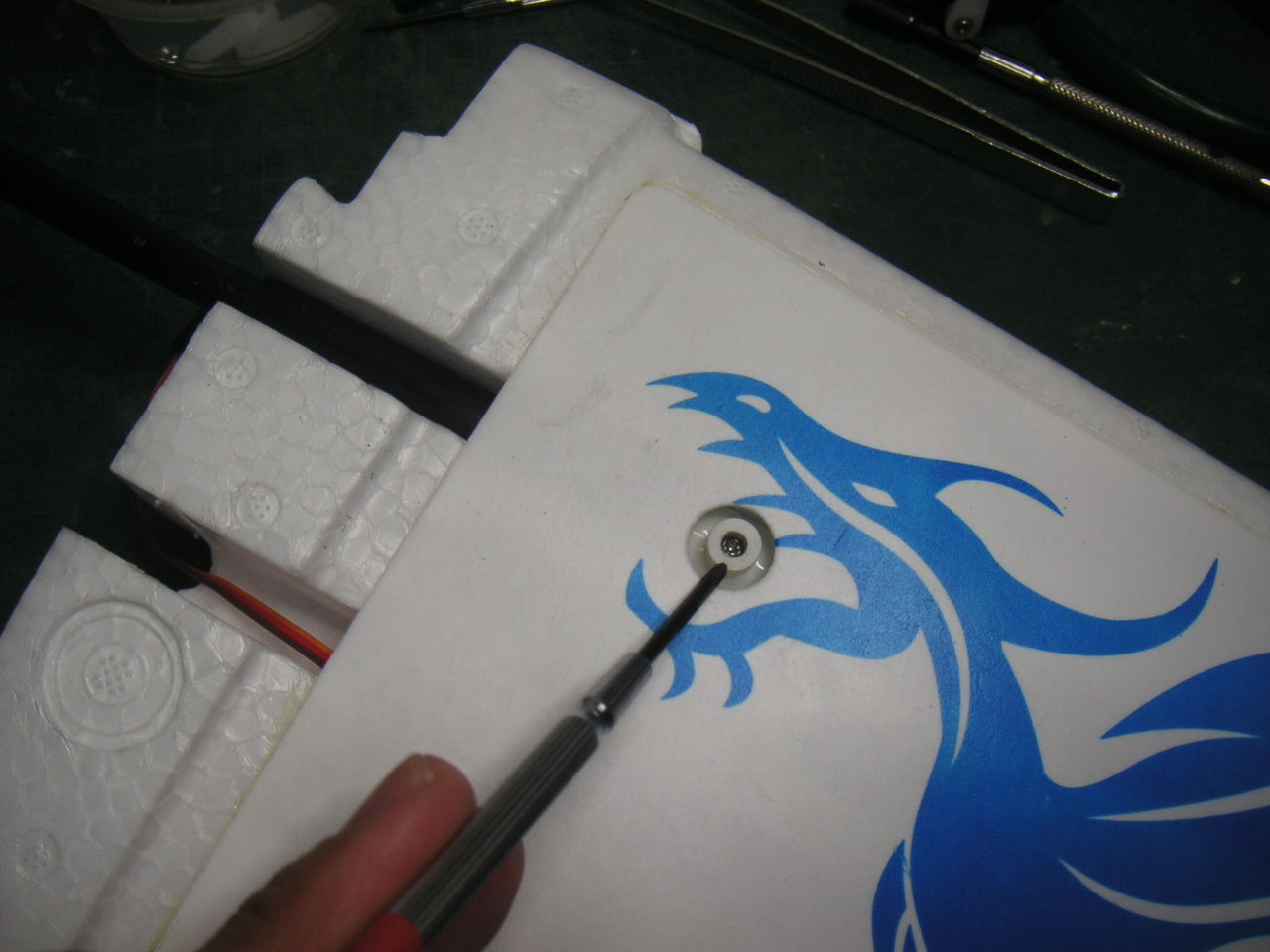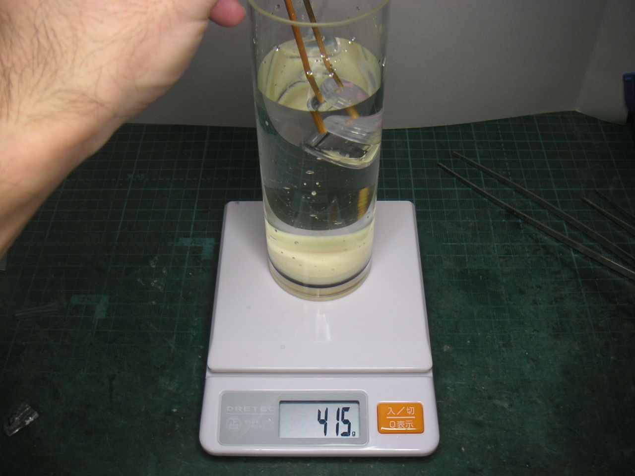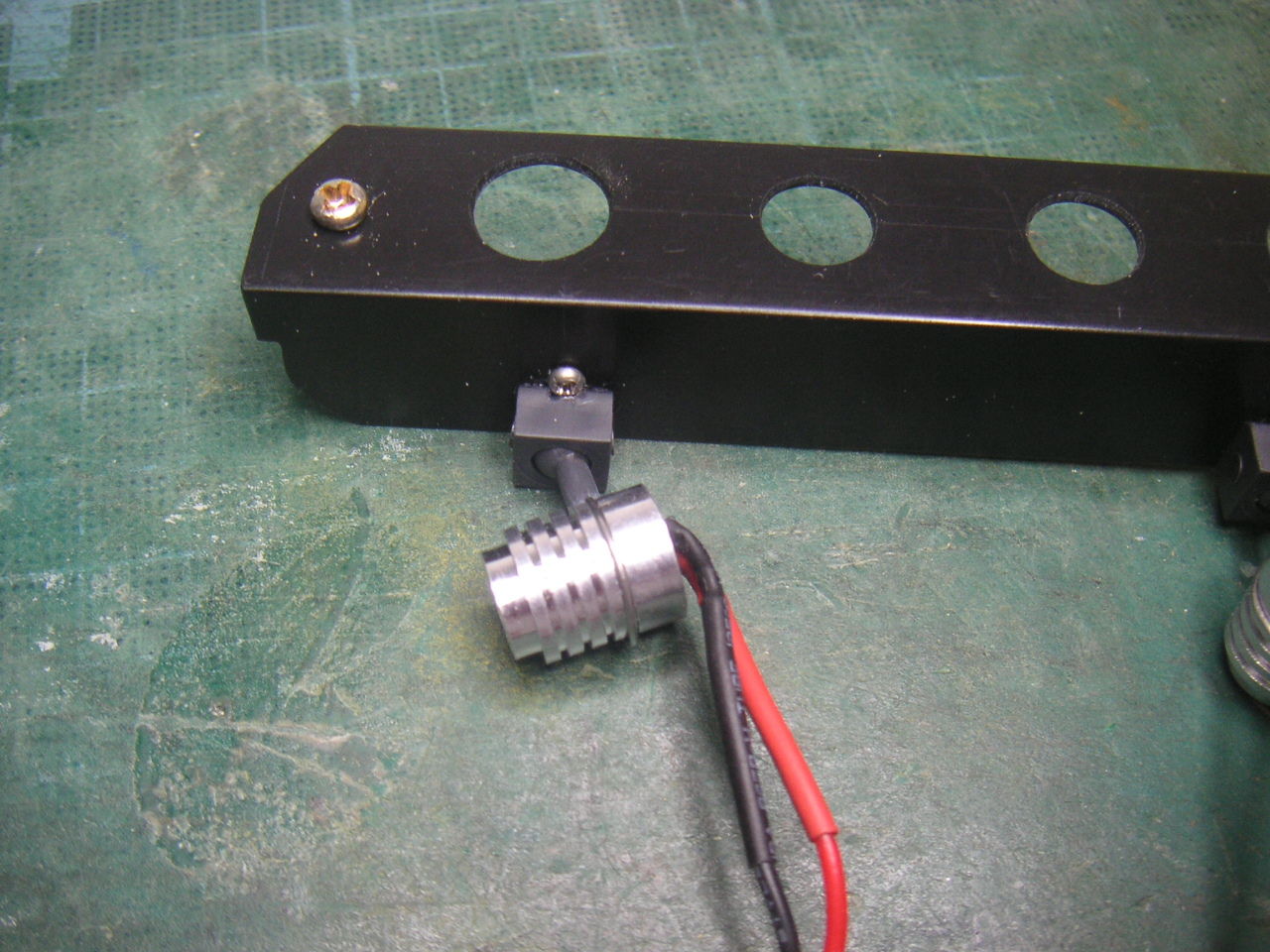 なので2機目は同じヘマはしないように脚を作り替えます。 2mmのステンレス棒が転がっていたのでチャッチャと曲げてカーボン脚の代わりにします。ステンレス棒だけでは保持出来ないので2mmABS板を差し込んで台座に保持させます。もちろんネジを入れてABS板の抜け止めとします。