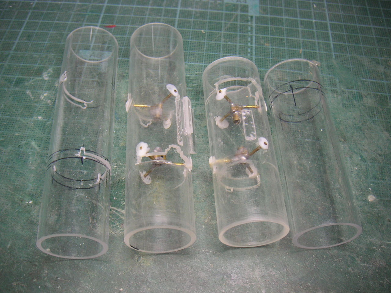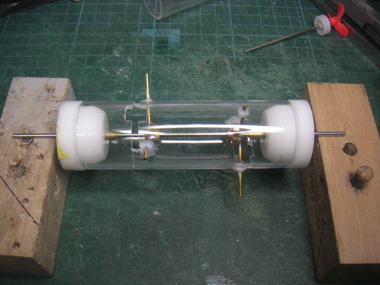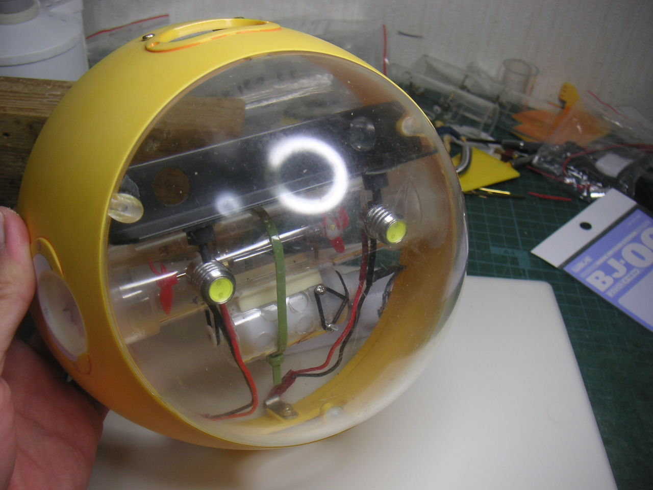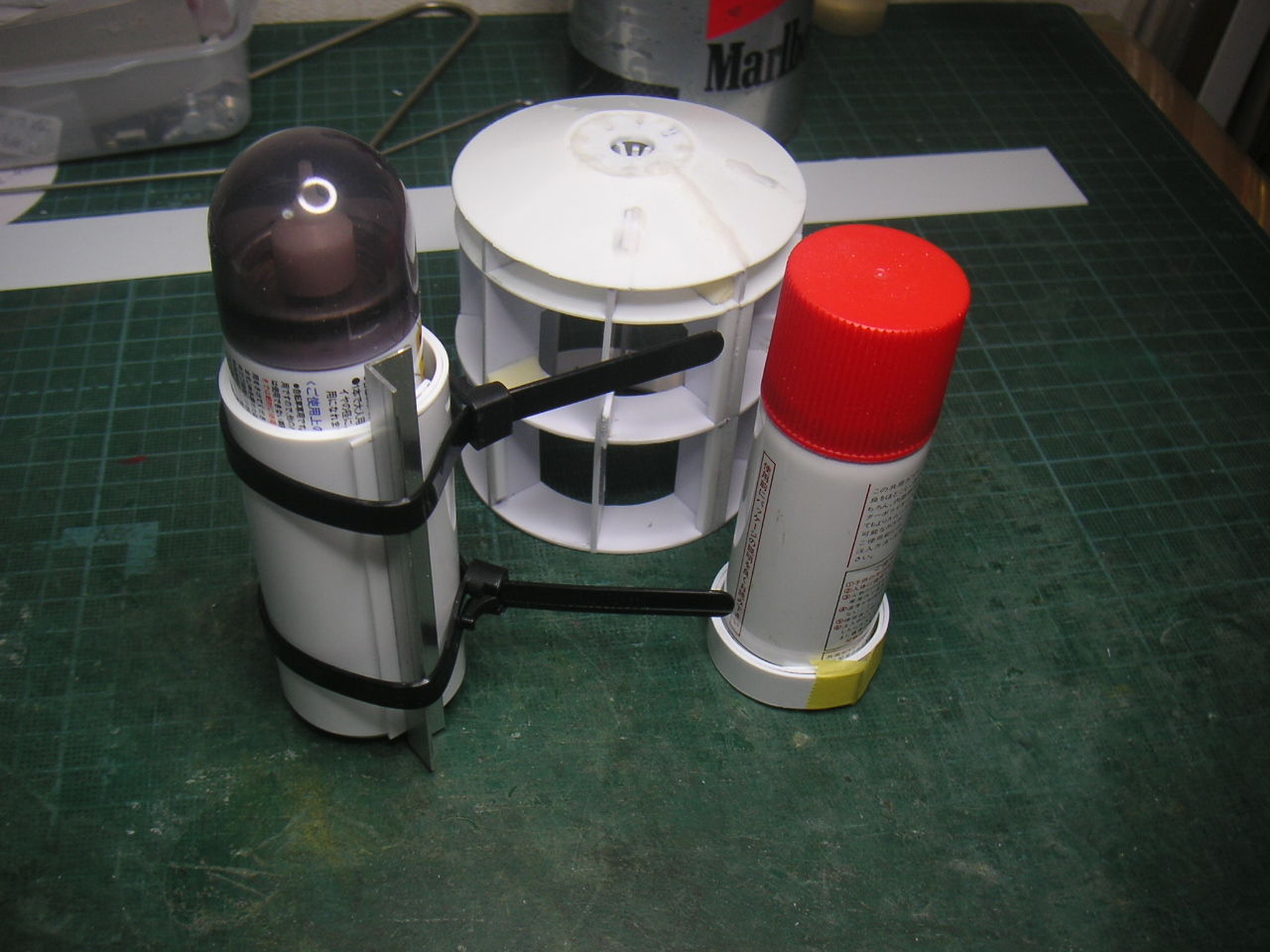 "\( ̄^ ̄)゛ハイ!! 2機目完成です。 ま〜見てくれは1機目と変わりがなく脚がステンレス棒に変わったぐらいでしょうか? 2機目ロールアウトです。ъ(`ー゜) すでに2機目の初フライトは完了しました。 結果は無傷の生還!! (*゜▽゜ノノ゛☆パチパチ ただ脚が弱すぎ・・・ 台座は全くビクともせずですが着陸のたびに足がグニャっと曲がってしまいます。 ま〜曲がったら真っすぐにすればいいのですがちょっと弱すぎです。 微妙な加減が必要みたいです。