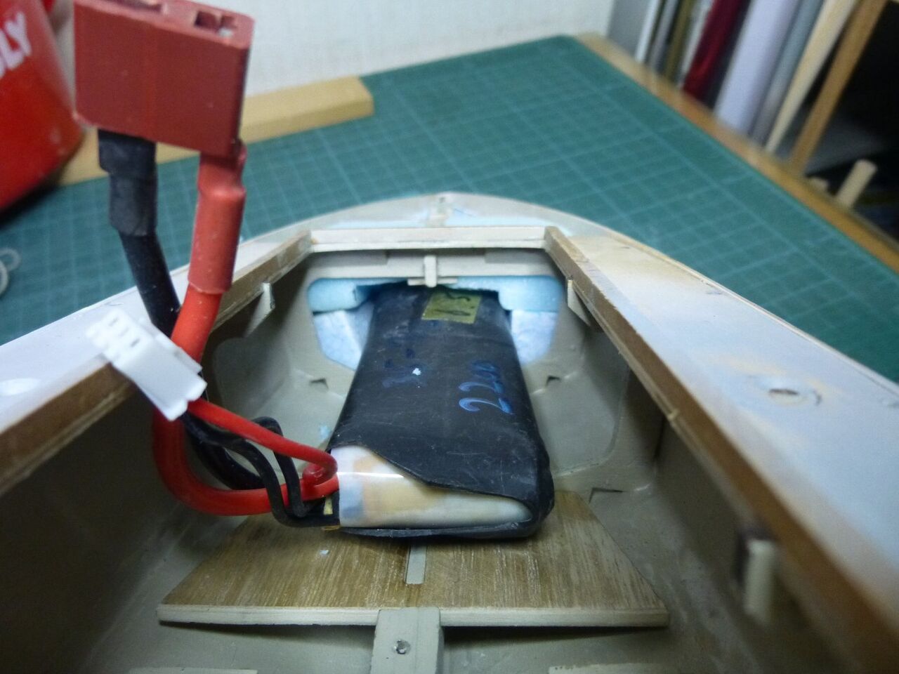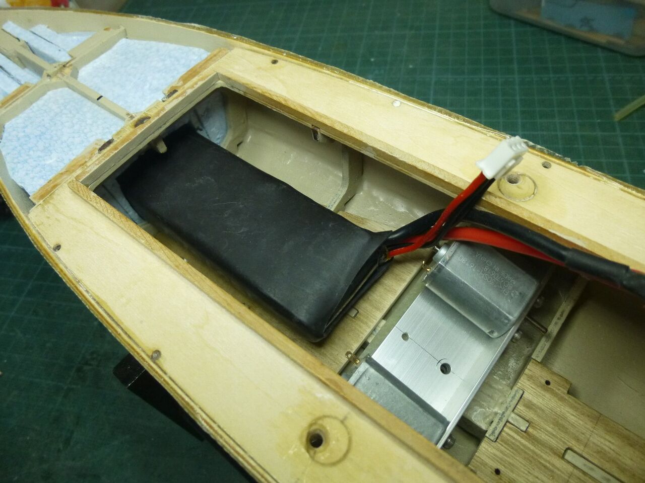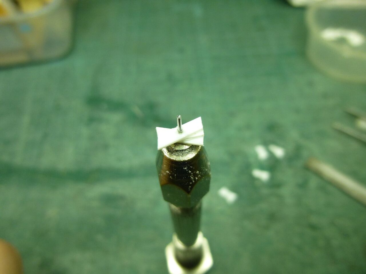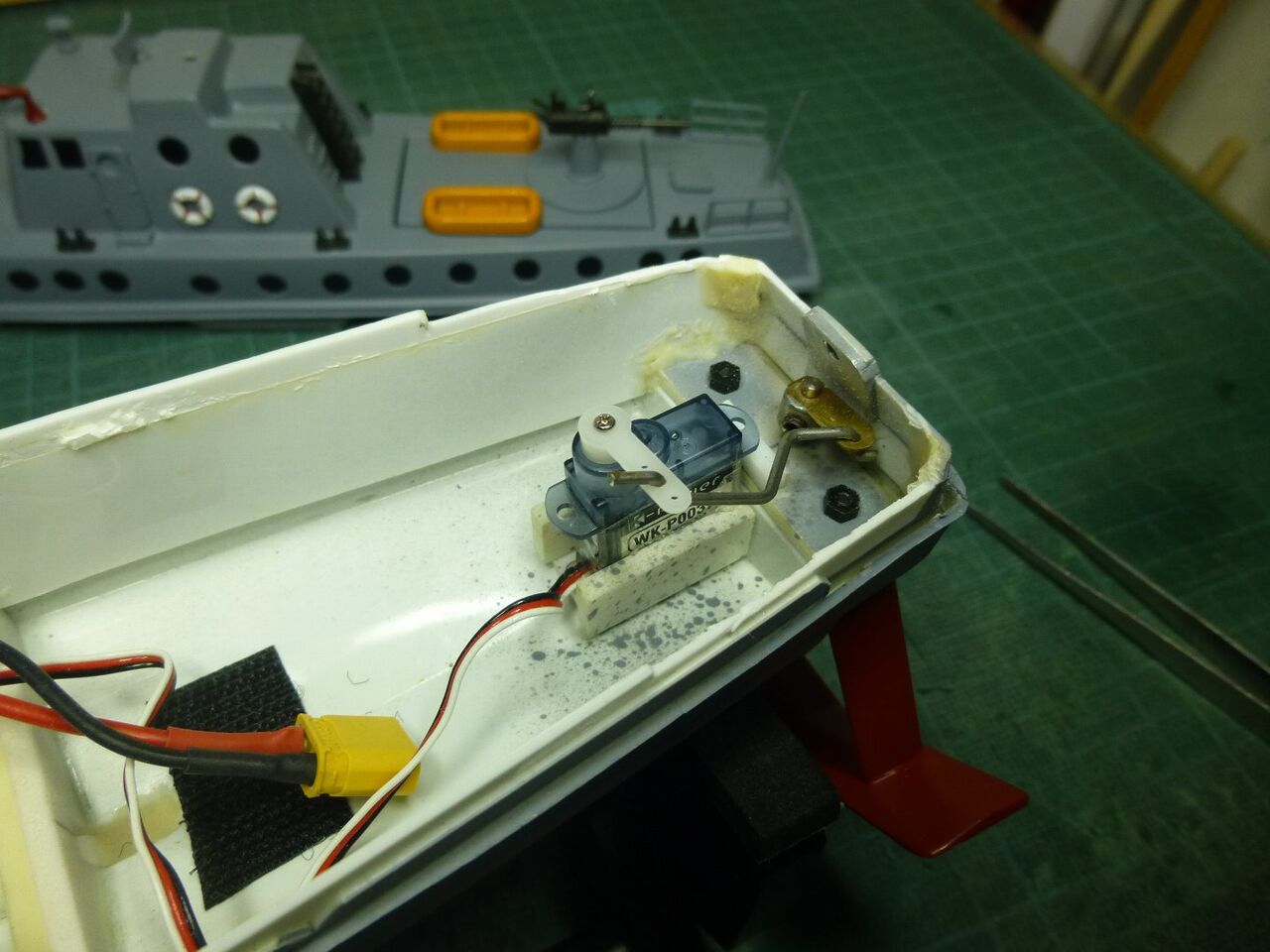 船体への取り付けです。 ユニバーサルジョイントを使うといっても軸は一直線にした方が良いのでまずは内径2mm