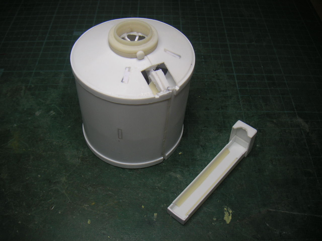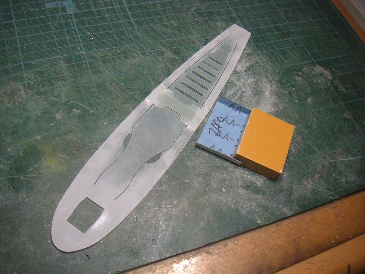 (ノ´▽`)ノオオオオッ♪ やっと場所が判明しました。 水平尾翼を取り付けた後にラダーの部分を埋めるパーツでした。 まったく気が付きませんでした。 何気なくラダーヒンジのスリツト溝をカットしていた時に(o・。・o)あっ! と気が付きました。 取説が無いからまったく分かりませんでした。