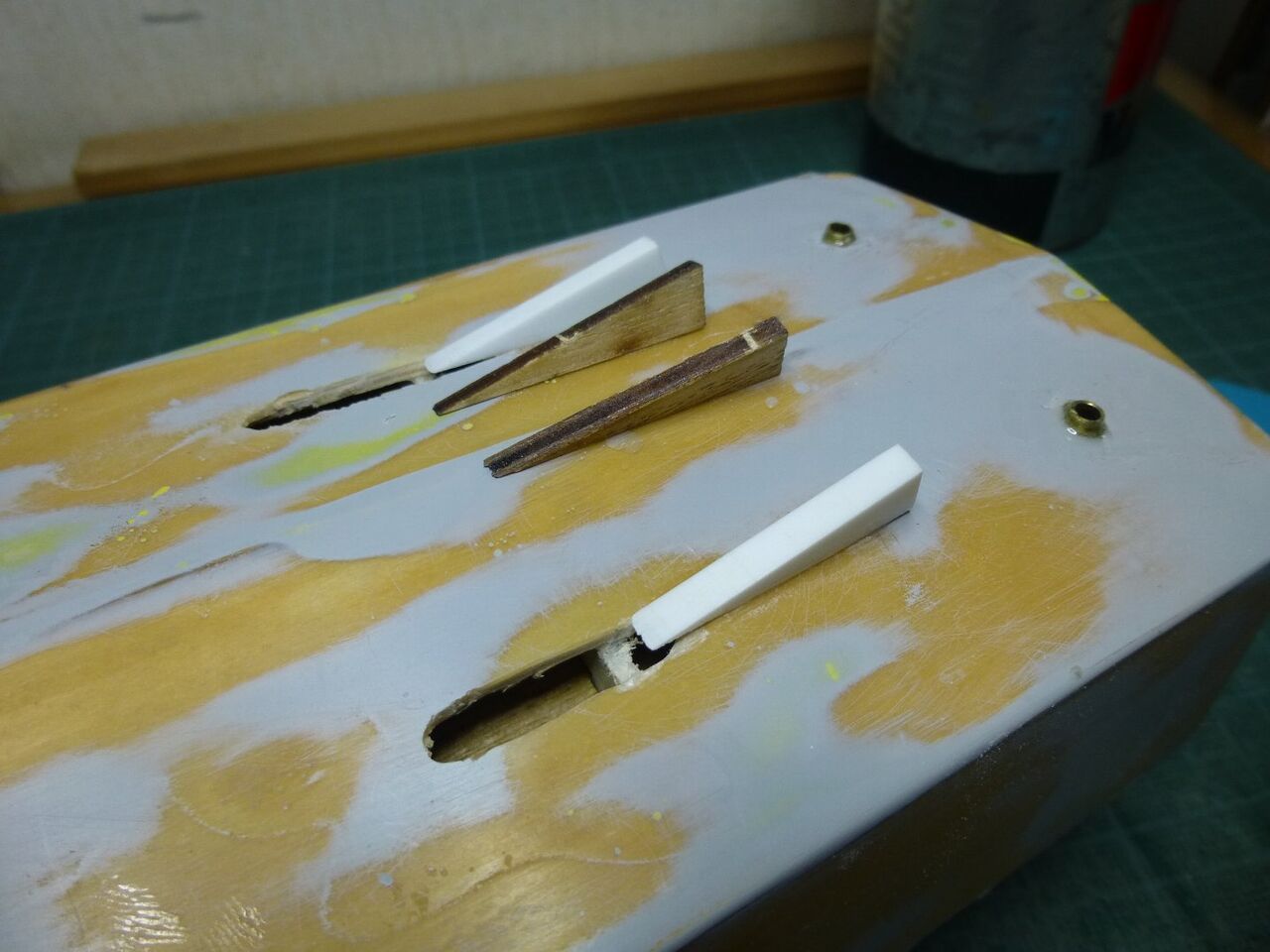 "\( ̄^ ̄)゛ハイ!!これでバッチリでしょ 隙間があってもパテで埋められますが隙間が無いに越したことはないので極力ピッタリとなるように削り出しました。