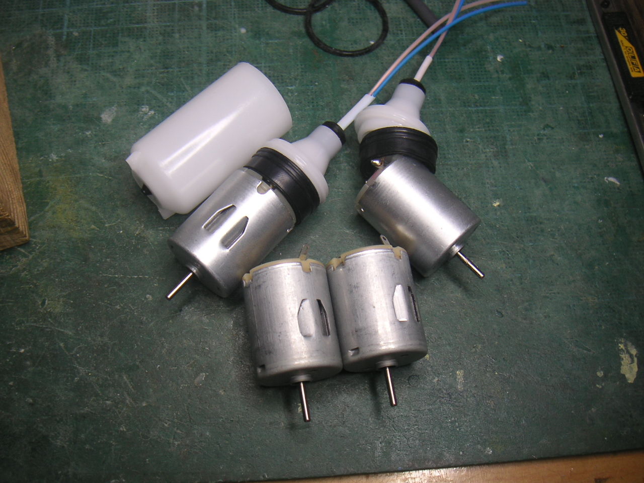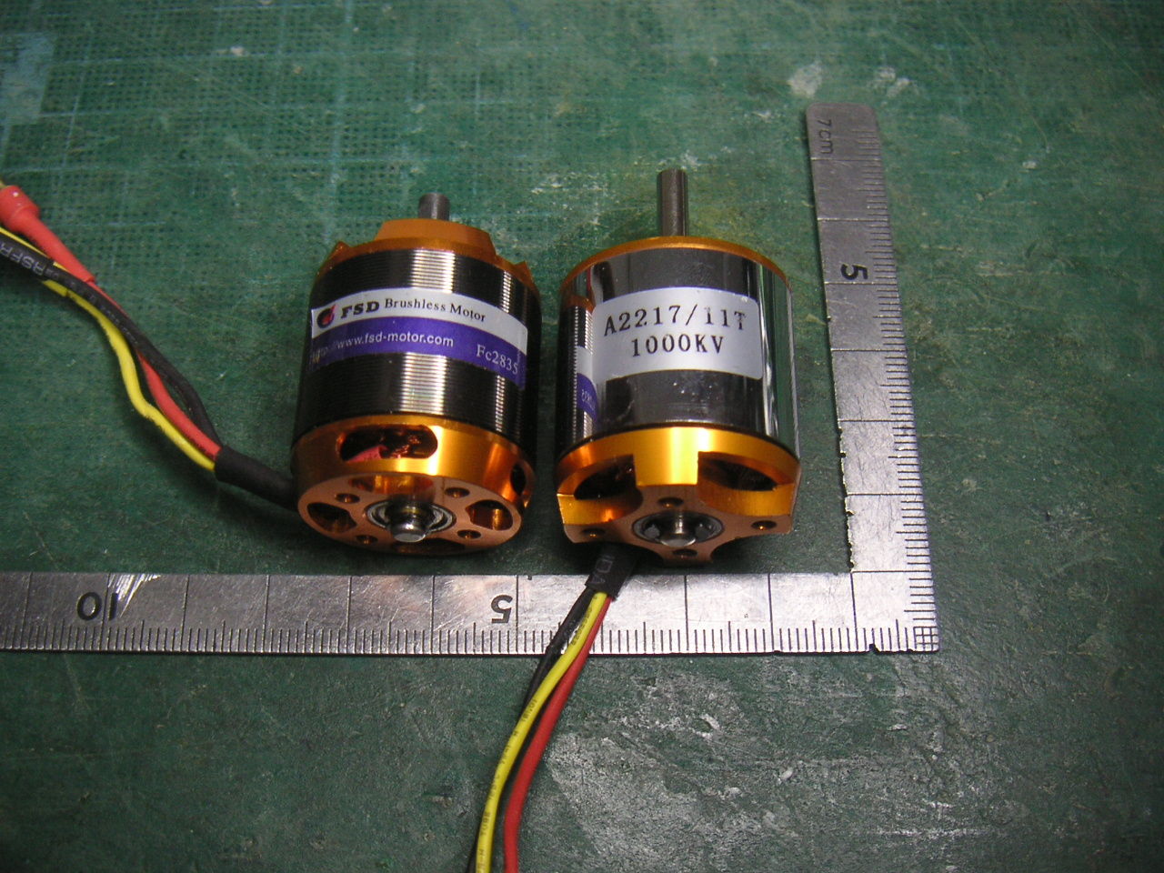 モーターですが1機目で使っていたモーターは無傷でしたのでそのまま使います。スカイラーク純正で付いていたモーターと似ていますね 比較用に置いたモーターはスカイラークで使って好評だったFSD FC2835-08 1038KV です。 モーターの大きさはほぼ一緒 これならFSDがポン付けで乗るかな???
