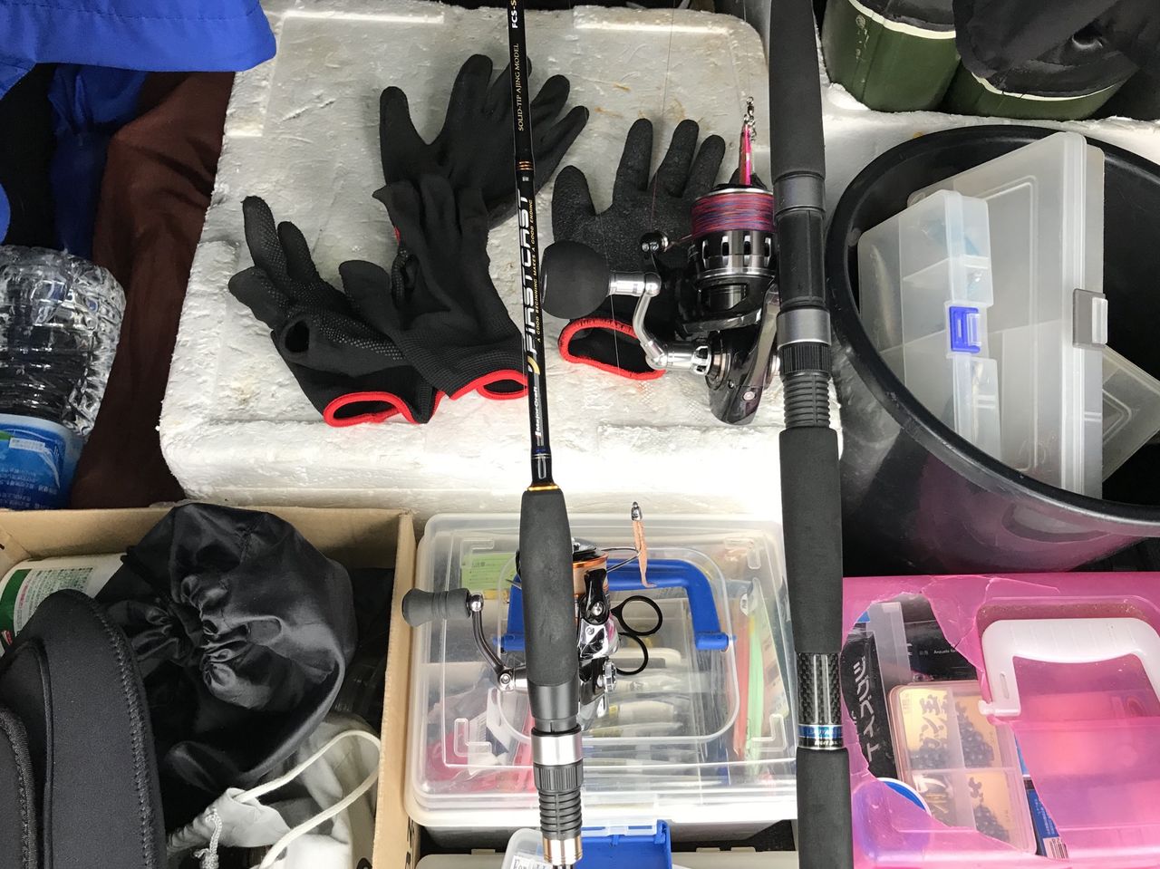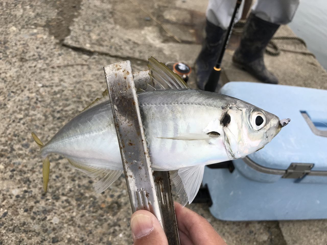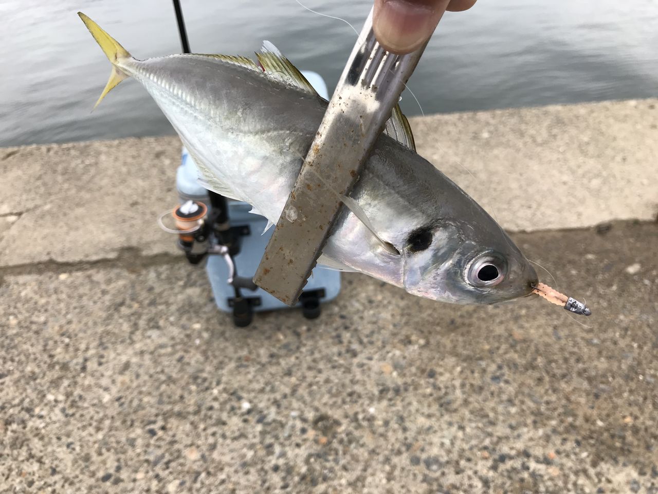 こんばんは、午後から雨がやんだので昨日に続きキャタリナでなんか釣りたくて漁港にライトショアジギングに行きました (^_^)しかし次第に風向きも悪くなり釣れる気配もないのでノーバイトで撤収(°▽°)時間があるので近所のサーフに様子を見に行く途中に船着場でサビキ釣りのオジさん多数発見 (^_^)もしやアジ釣れるかも?タックルは一通り車載してあるので急遽アジングすることに決定(°▽°)サビキには時折良いサイズのアジが釣れてますがヨッサンは当たりません( ̄O ̄;)しかしサビキが当たらなくなったところでヨッサンバイト(^_^)なかなかいいサイズでした(^_^)再び直ぐにバイトして久しぶりに尺アジ出た(°▽°)