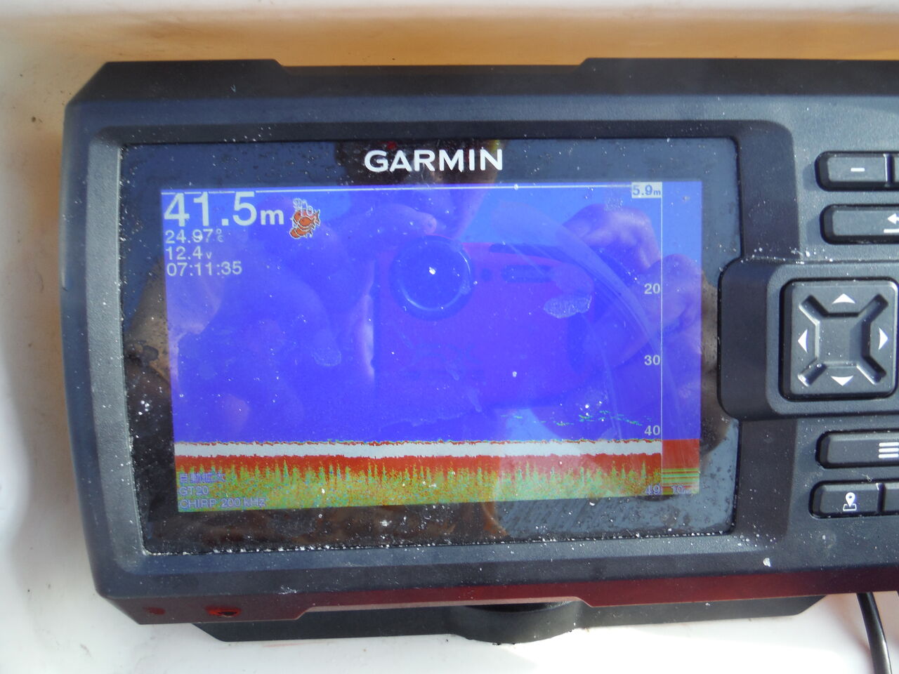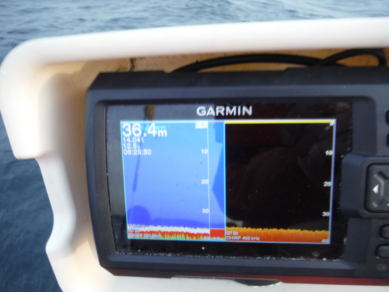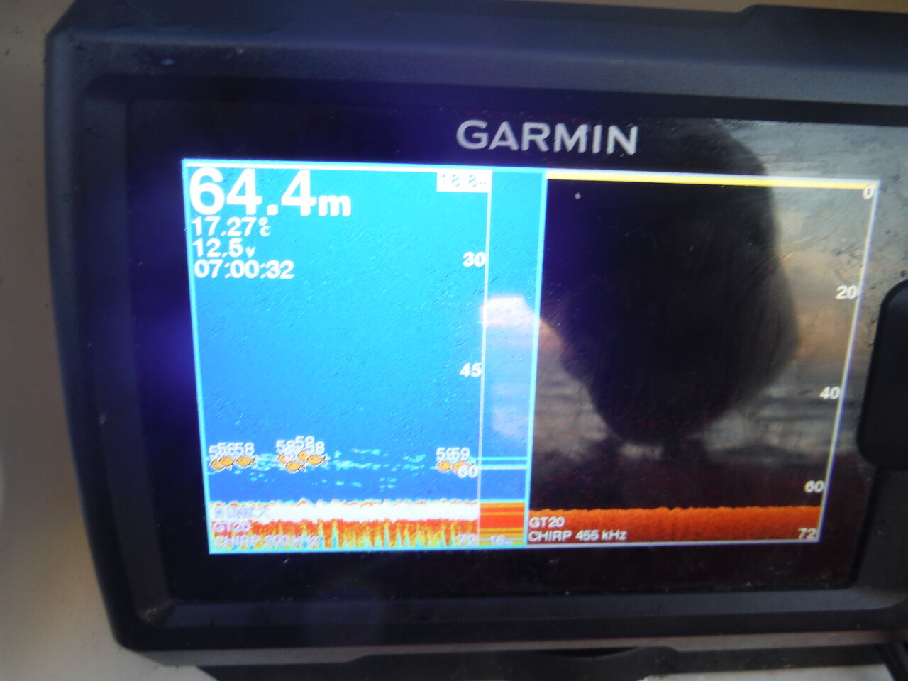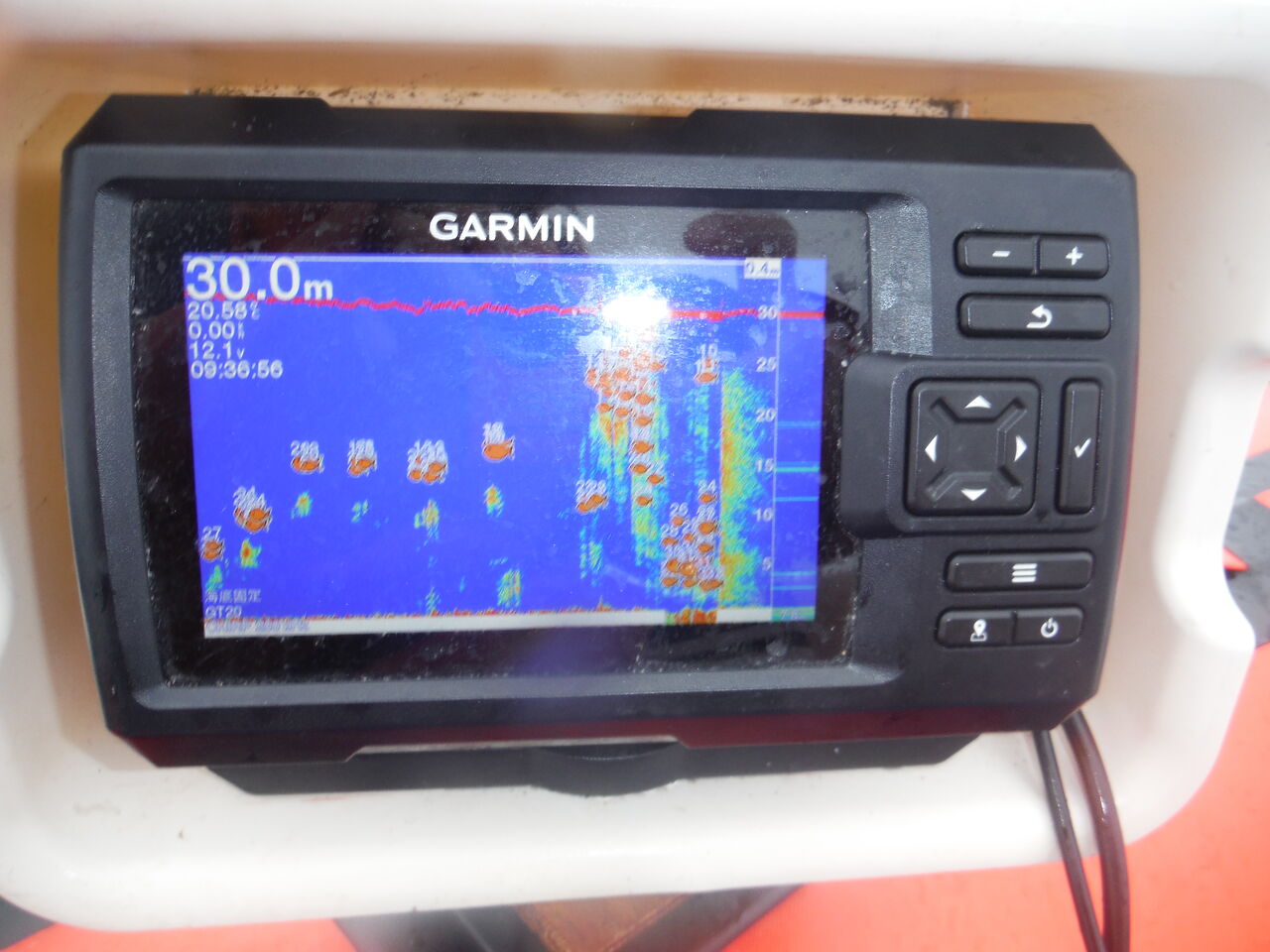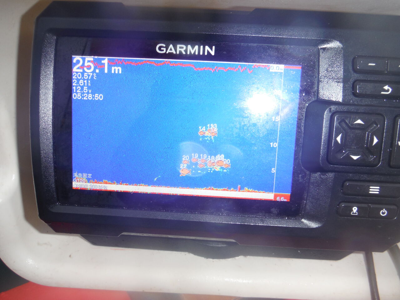 声を掛けに近づくと急に魚探に激しい反応が!