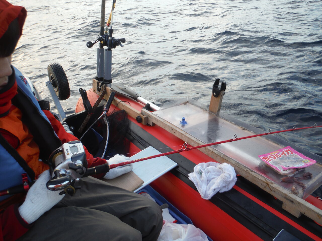 思ったより風・波が強く寒くて釣り辛い('д` ;)