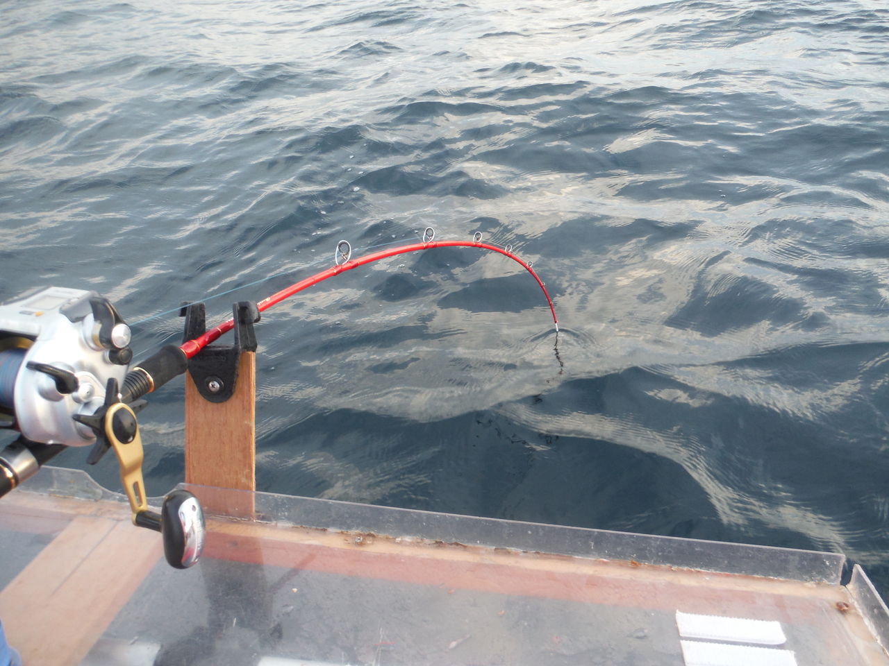 途中で止まった仕掛けを巻き上げると、巨大サメを掛けたかのような猛烈な引きです