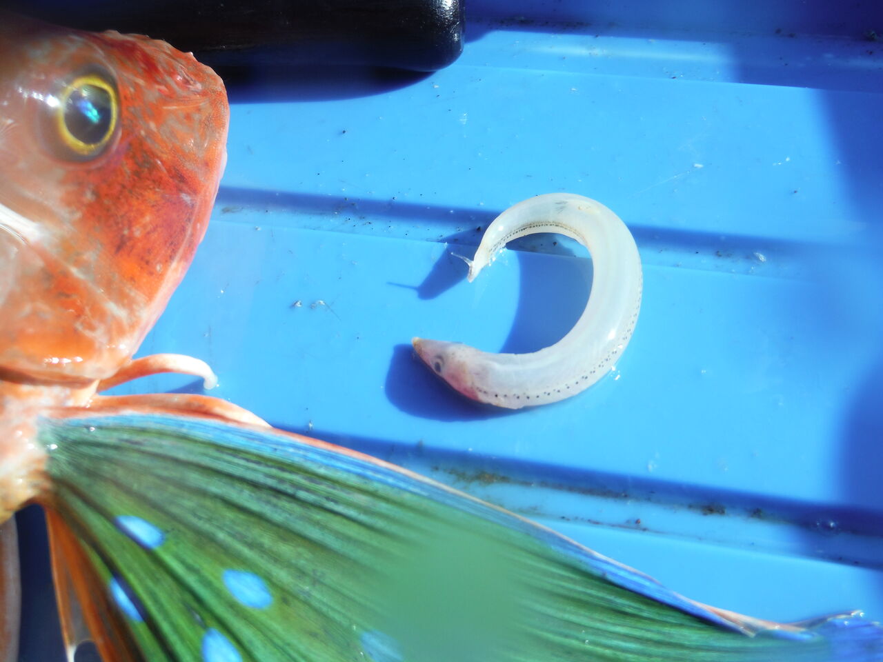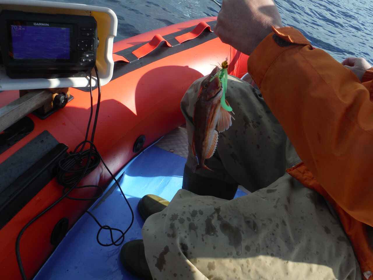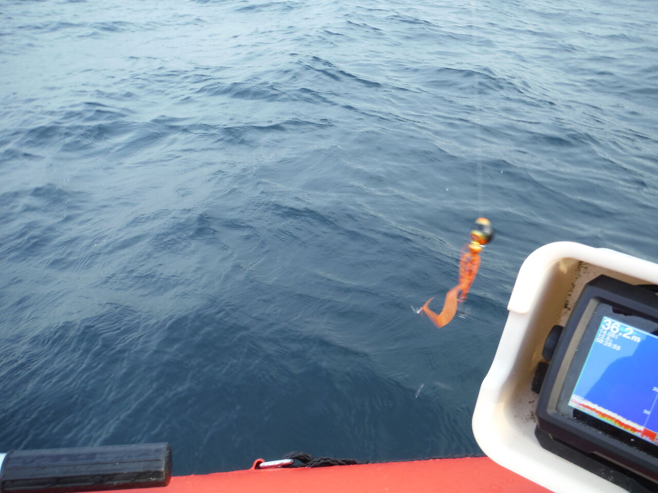 上がった後、朝少しお話したFRPボートの人は350m付近で本命アカムツを