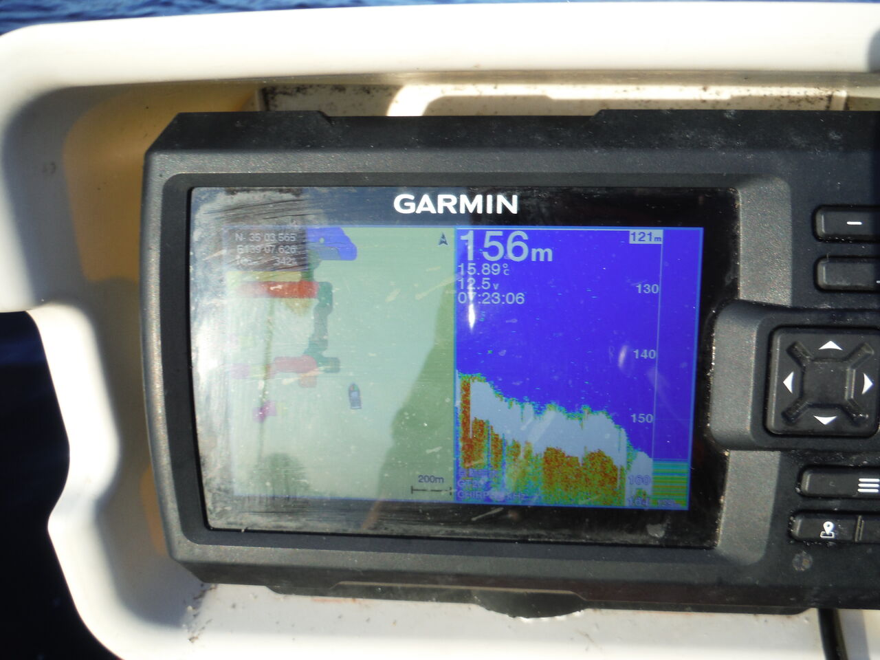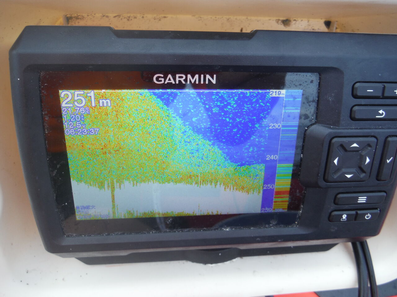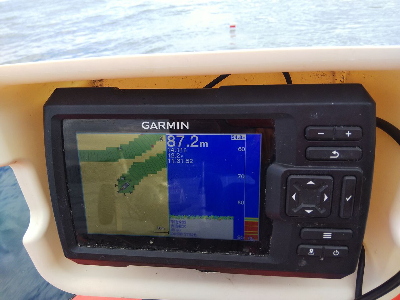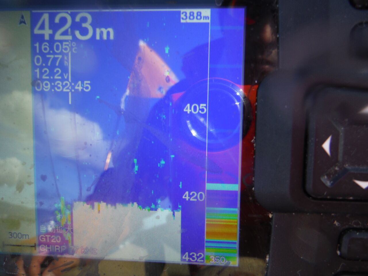 魚探は先程と同じで時々150mとかいい加減な表示をしますが、構わず