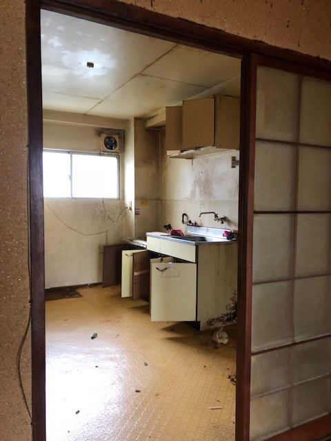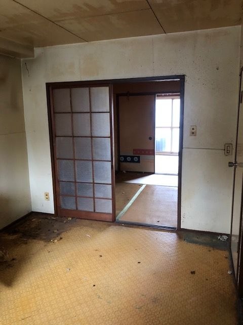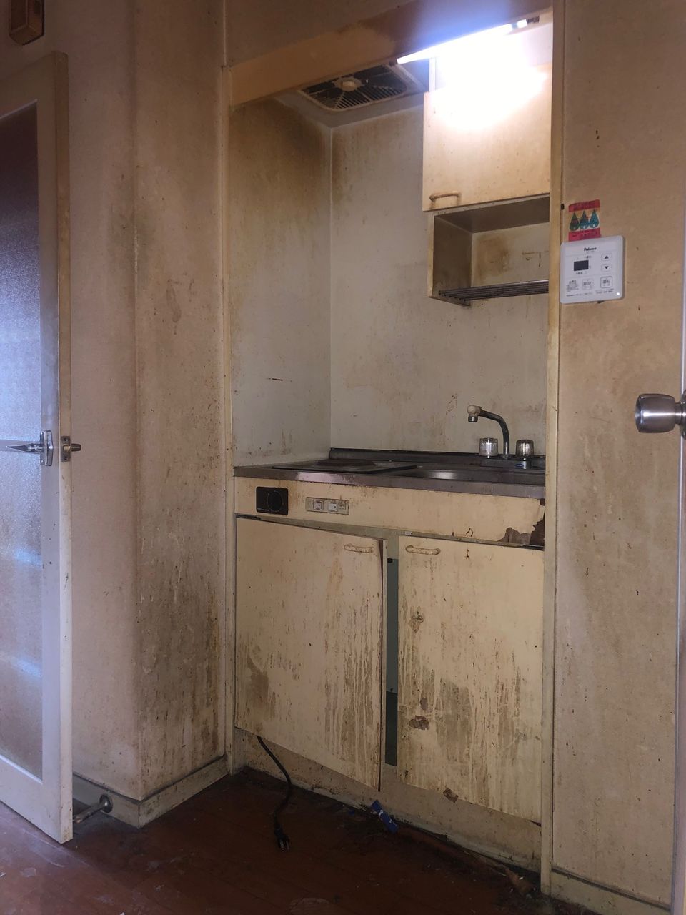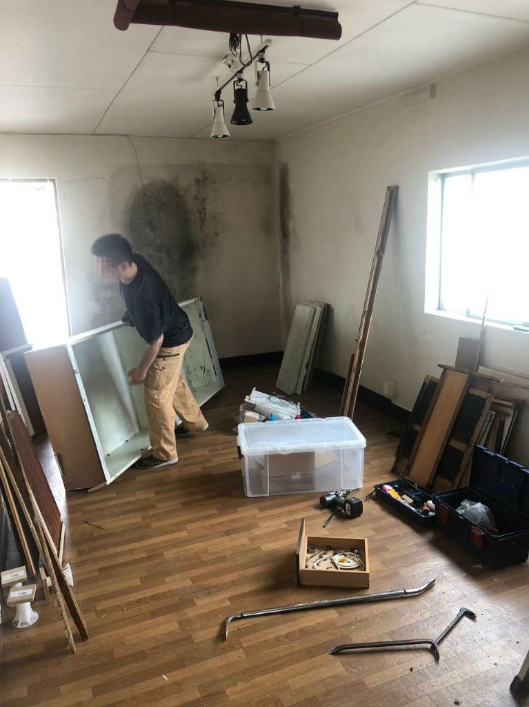 退去後の雑然とした部屋で撤去作業が始まりました・・・