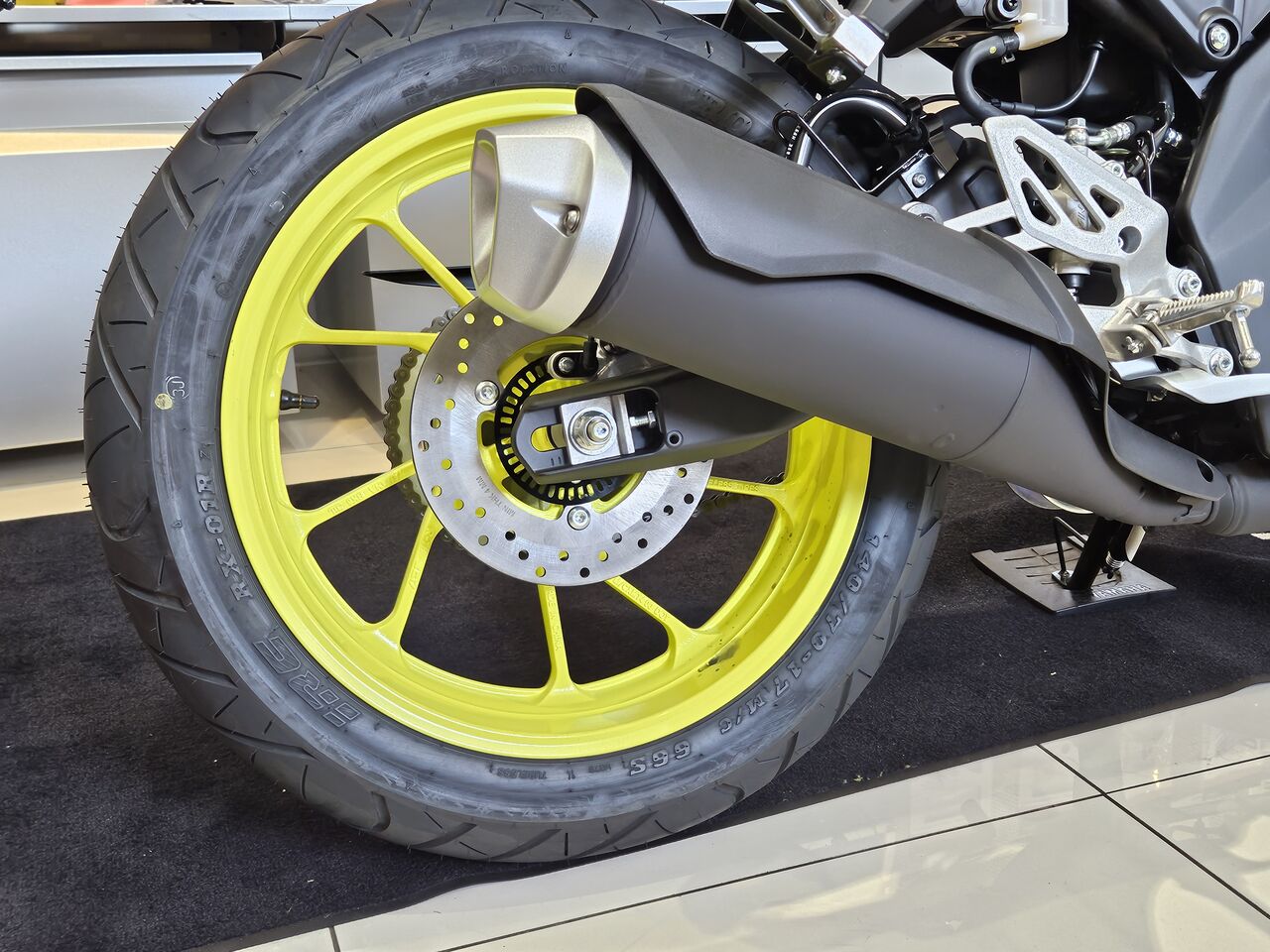 VVA付きの水冷単気筒エンジンにABS,TCSを標準装備。デルタボックスフレームに倒立式Fフォークとアルミ製リアアームが付いて、前後17インチのフルサイズ車体…