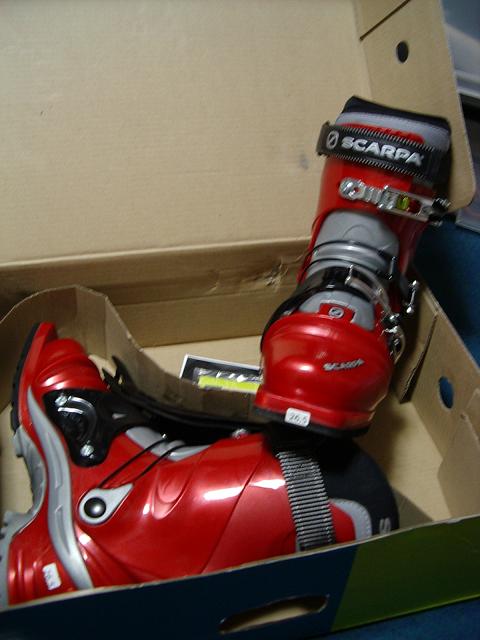 さて二日酔いがさめたところでお店に預けていたスキー靴を取りに行く。2年越しでようやくテレマーク道具を揃えしてしまったが、技術の進歩というか何というかインナーを自分の足形に合わるのが今の靴らしくて、まさにジャストフィット。山行のたびにコンピードを張りまくる兼用靴とはえらい違いで期待してしまう。今年の冬の楽しみで、目標。