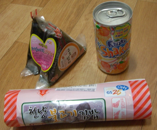 また、夕食は、上のMANJOOとコンビニのおにぎりです。